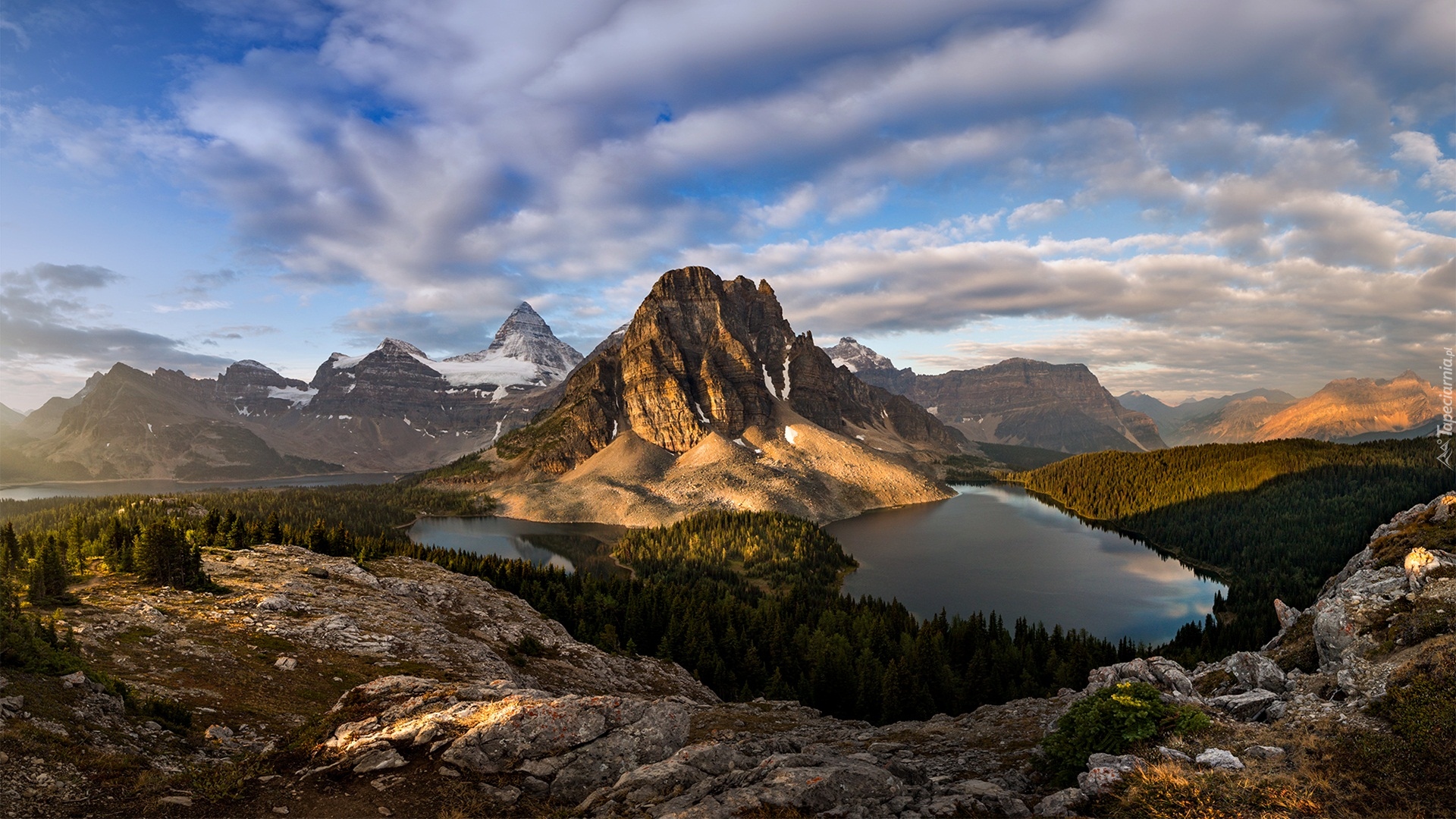 Edytor tapety: Góra Mount Assiniboine otoczona jeziorami o poranku