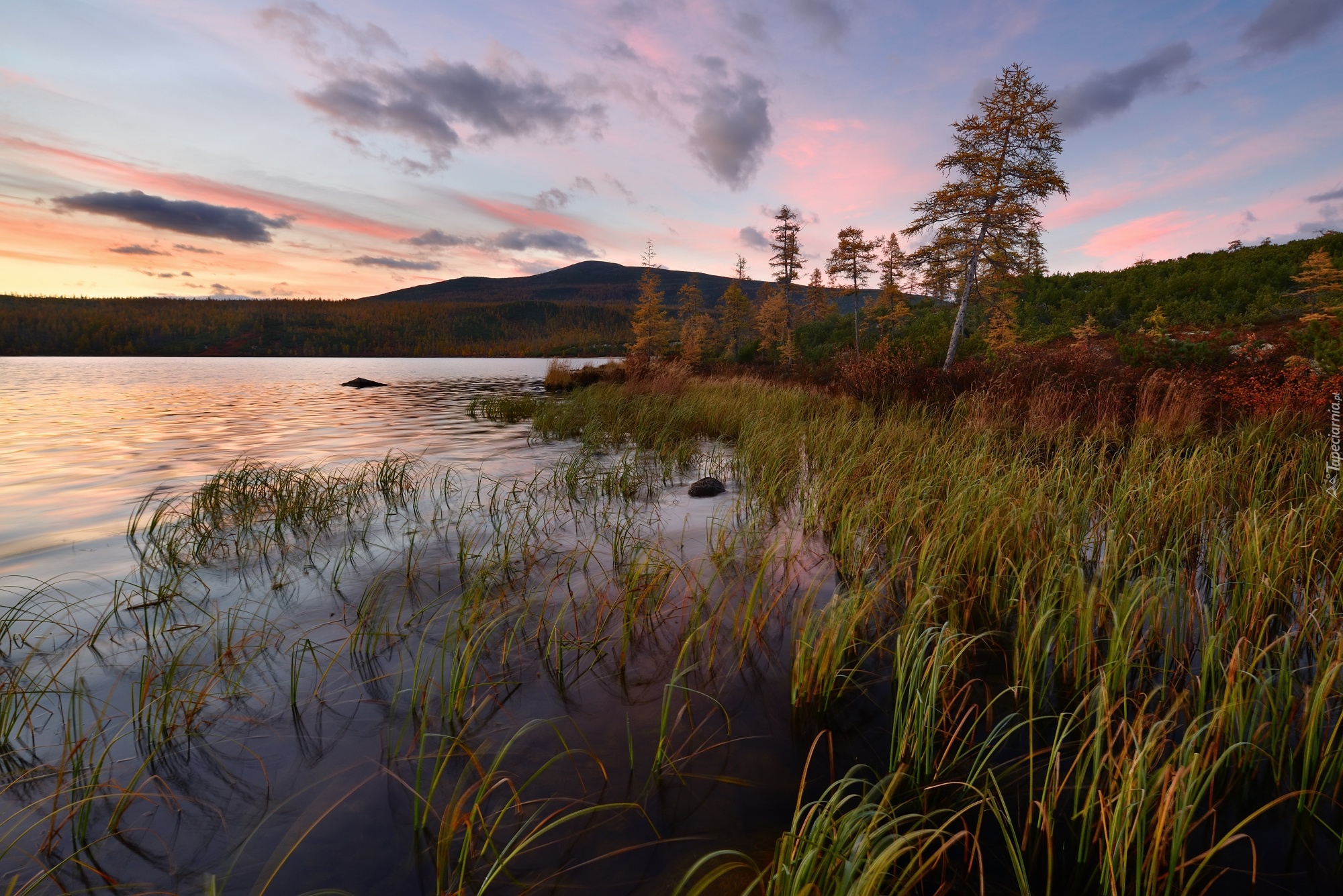 Edytor tapety: Brzeg jeziora Jacka Londona porośnięty trawą