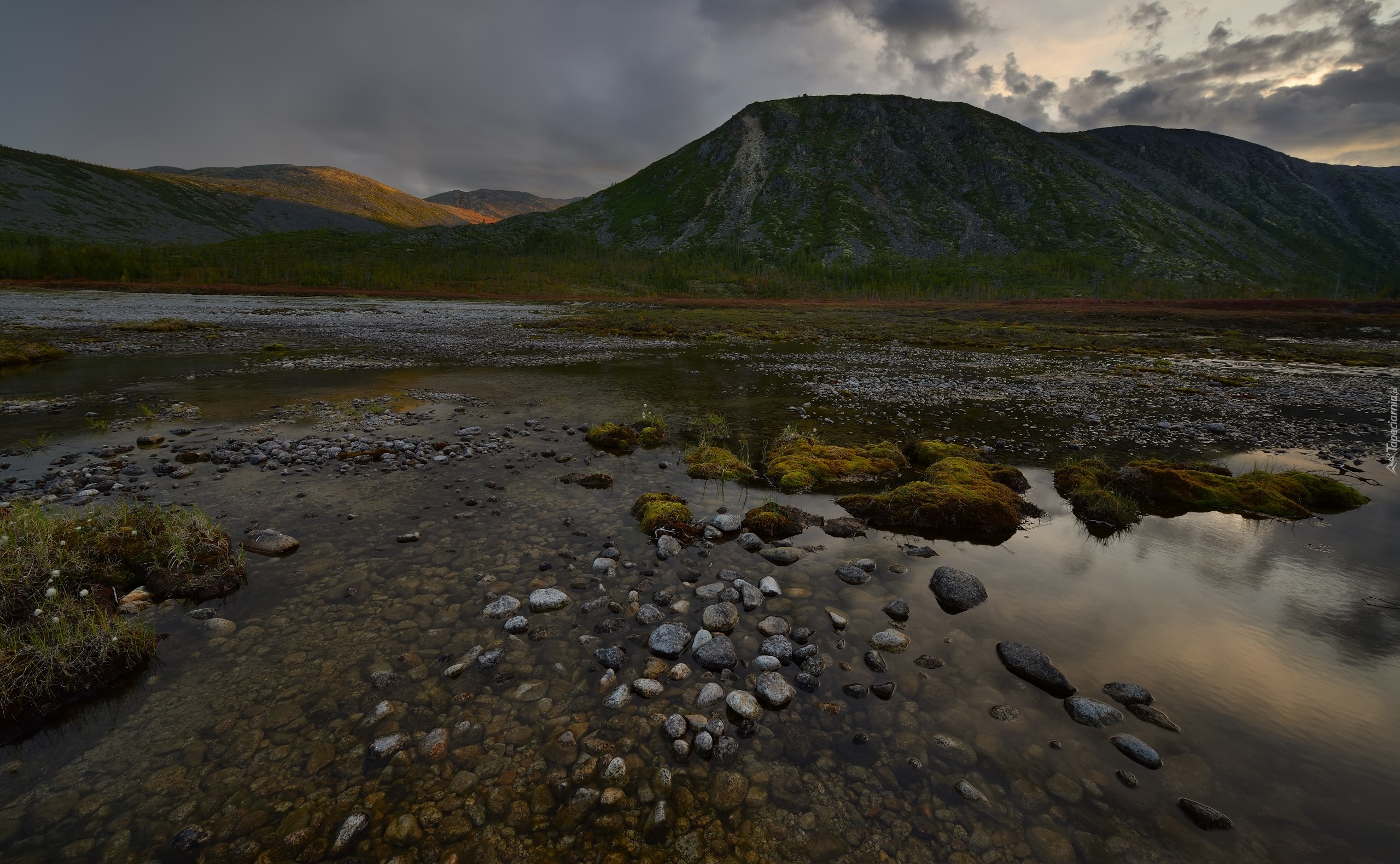 Edytor tapety: Rzeczka Studonyy na tle kołymskich gór
