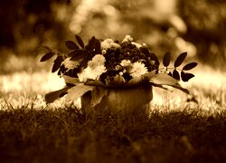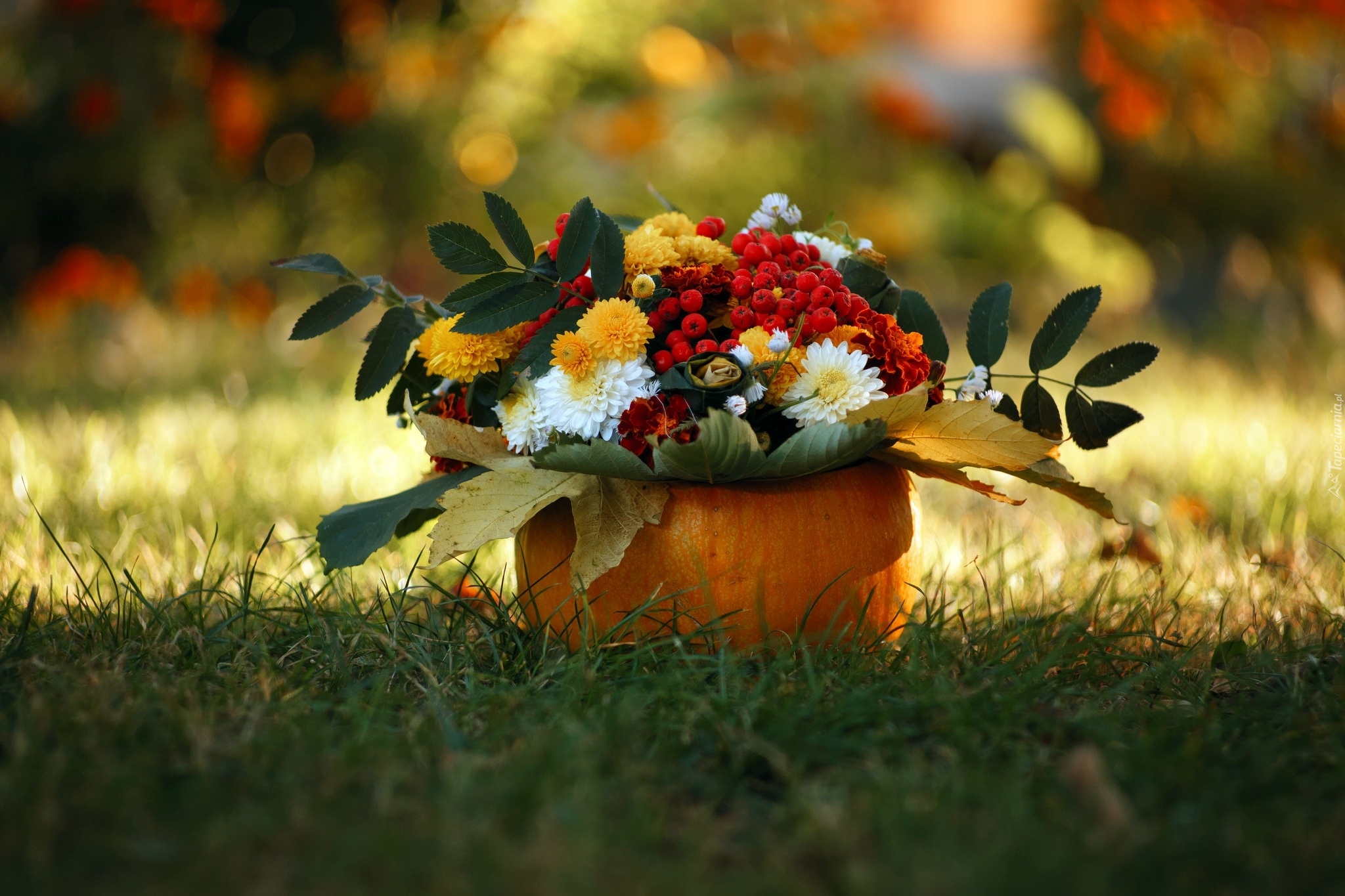 Edytor tapety: Kwiaty i jarzębina w wydrążonej dyni