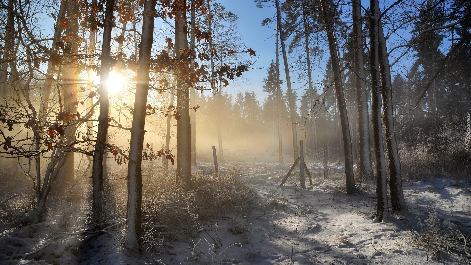Edytor tapety: Mglisty poranek w lesie zimą