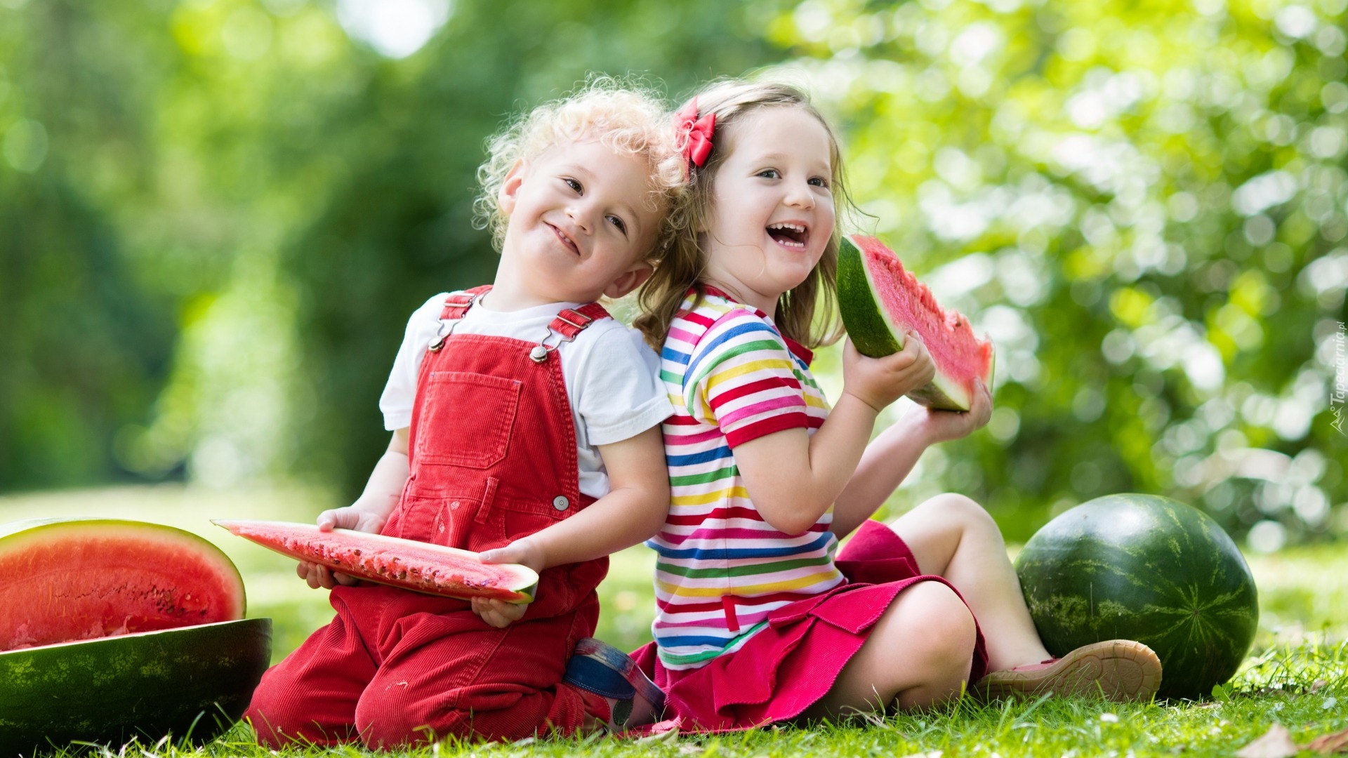 Edytor tapety: Uśmiechnięte dzieci z arbuzem