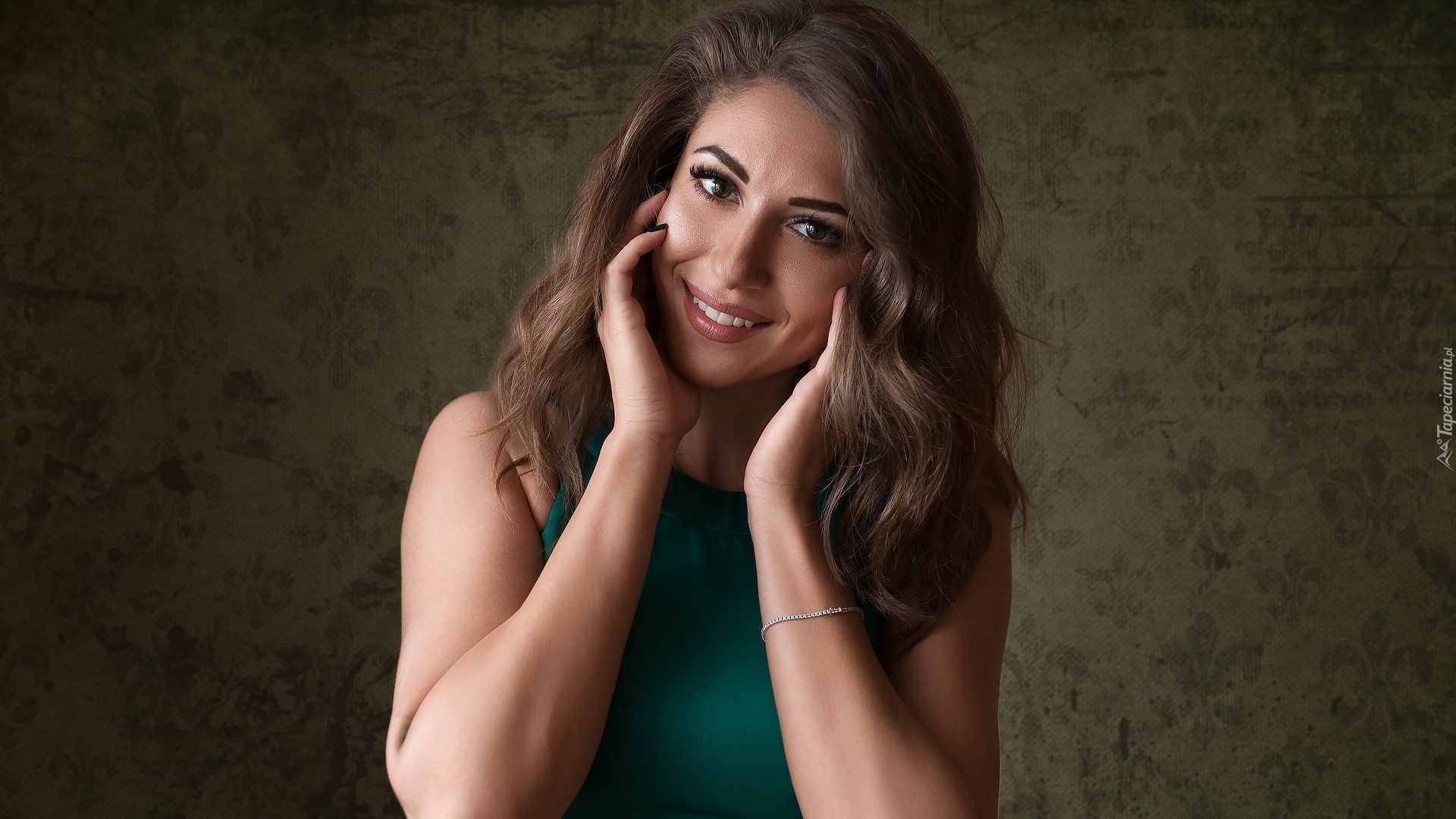 Edytor tapety: Uśmiechnięta szatynka z bransoletką
