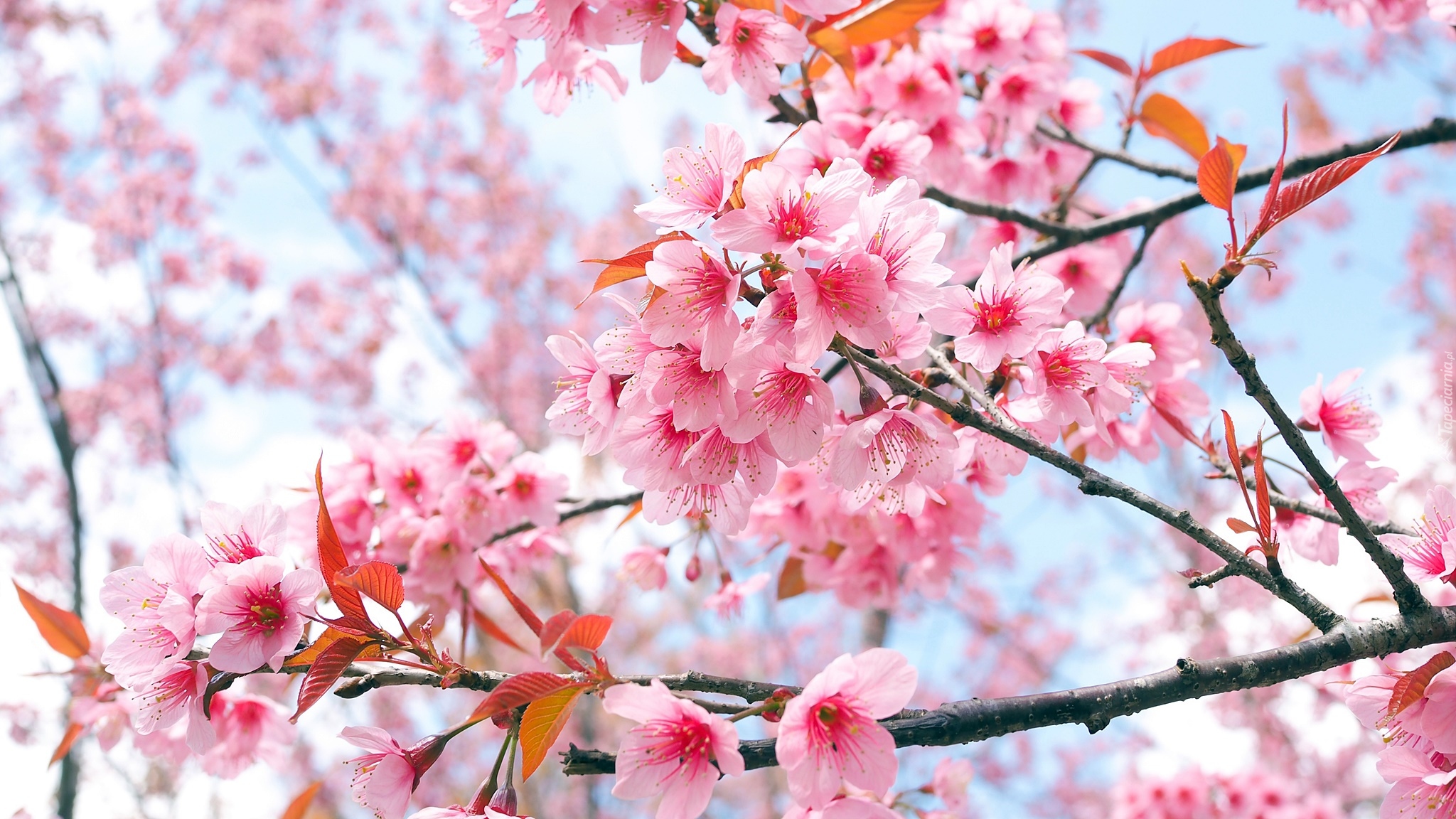 Edytor tapety: Kwiaty wiśni na gałązkach