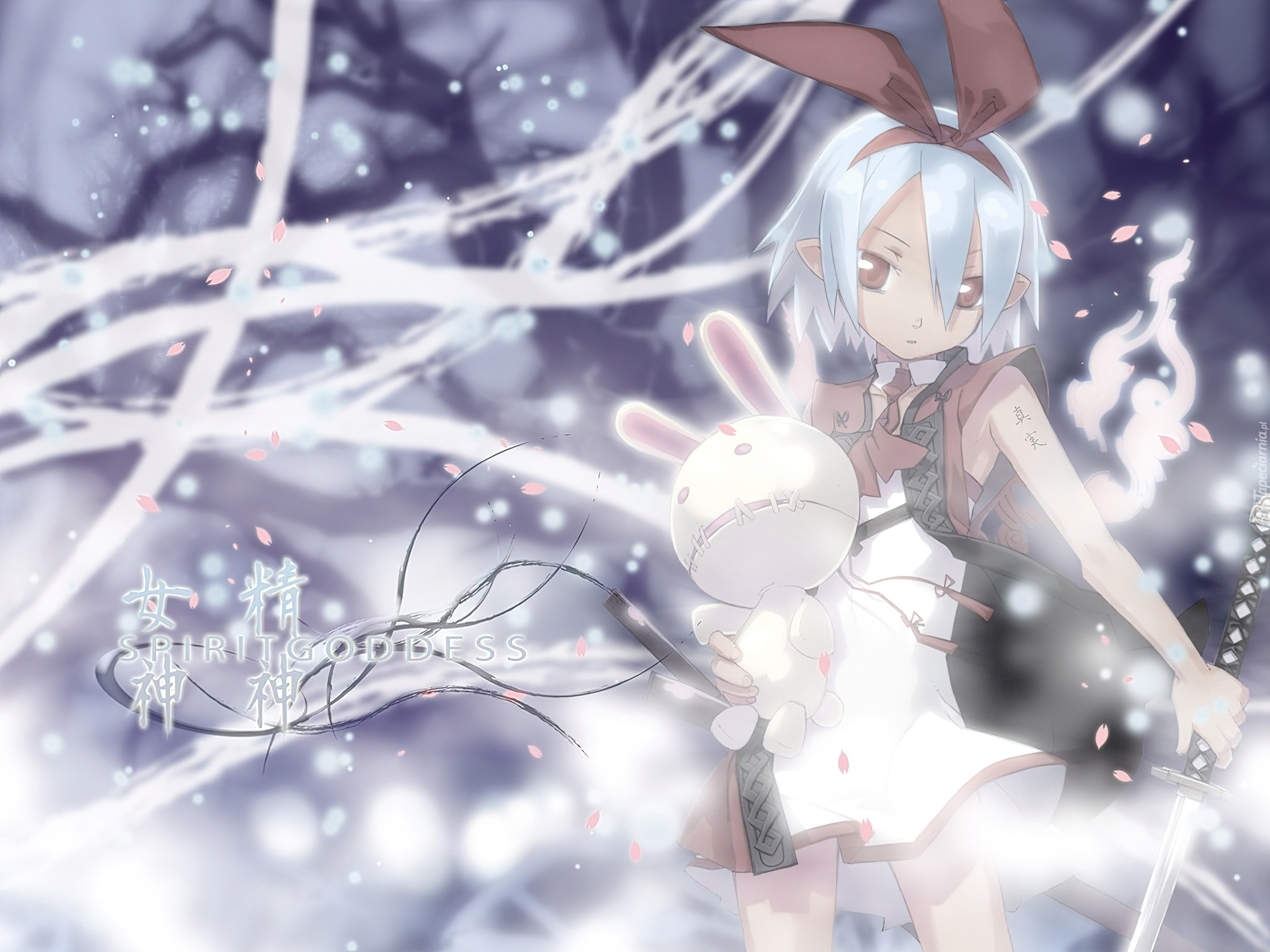 Edytor tapety: Disgaea, kokarda, dziewczyna, królik, miecz