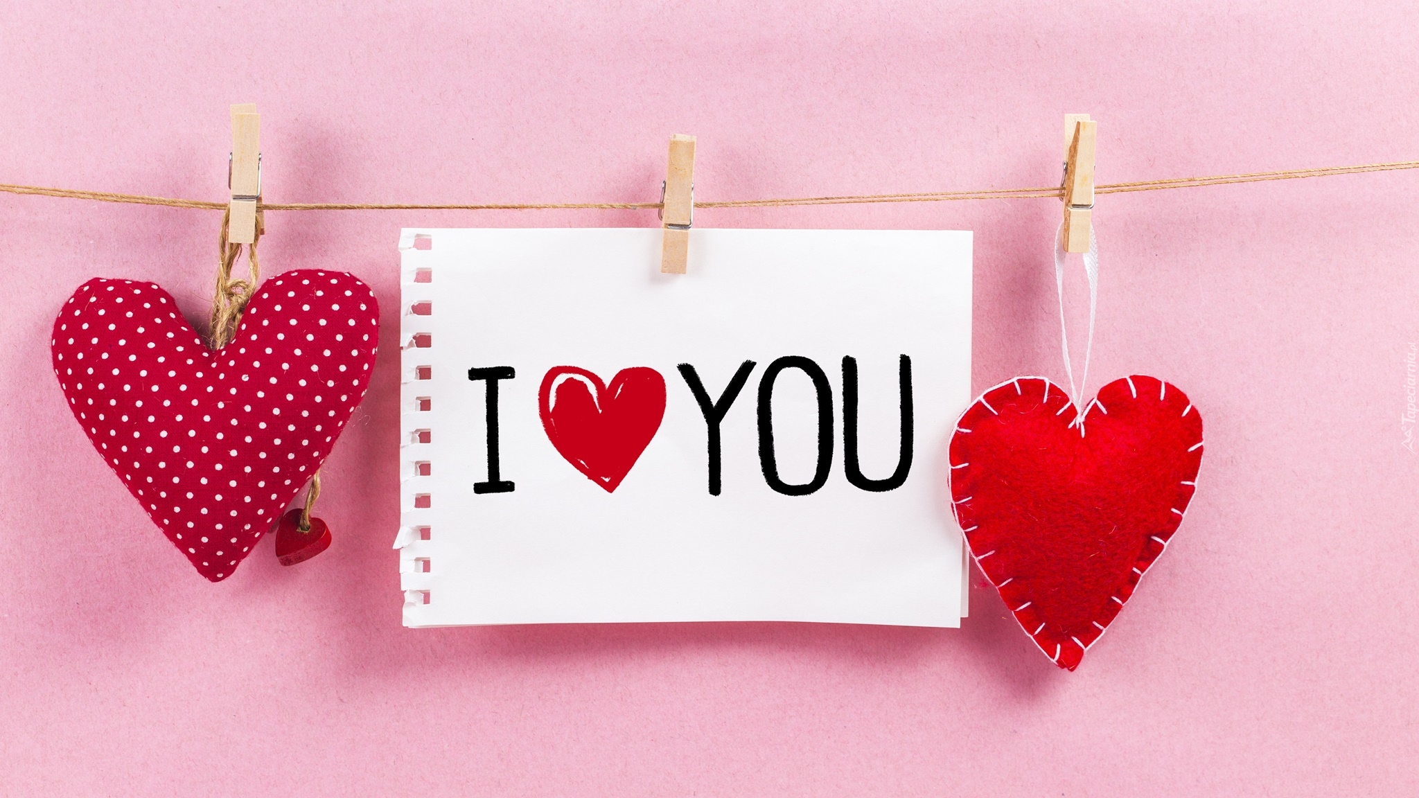 Edytor tapety: Serduszka i kartka przypięte do sznurka