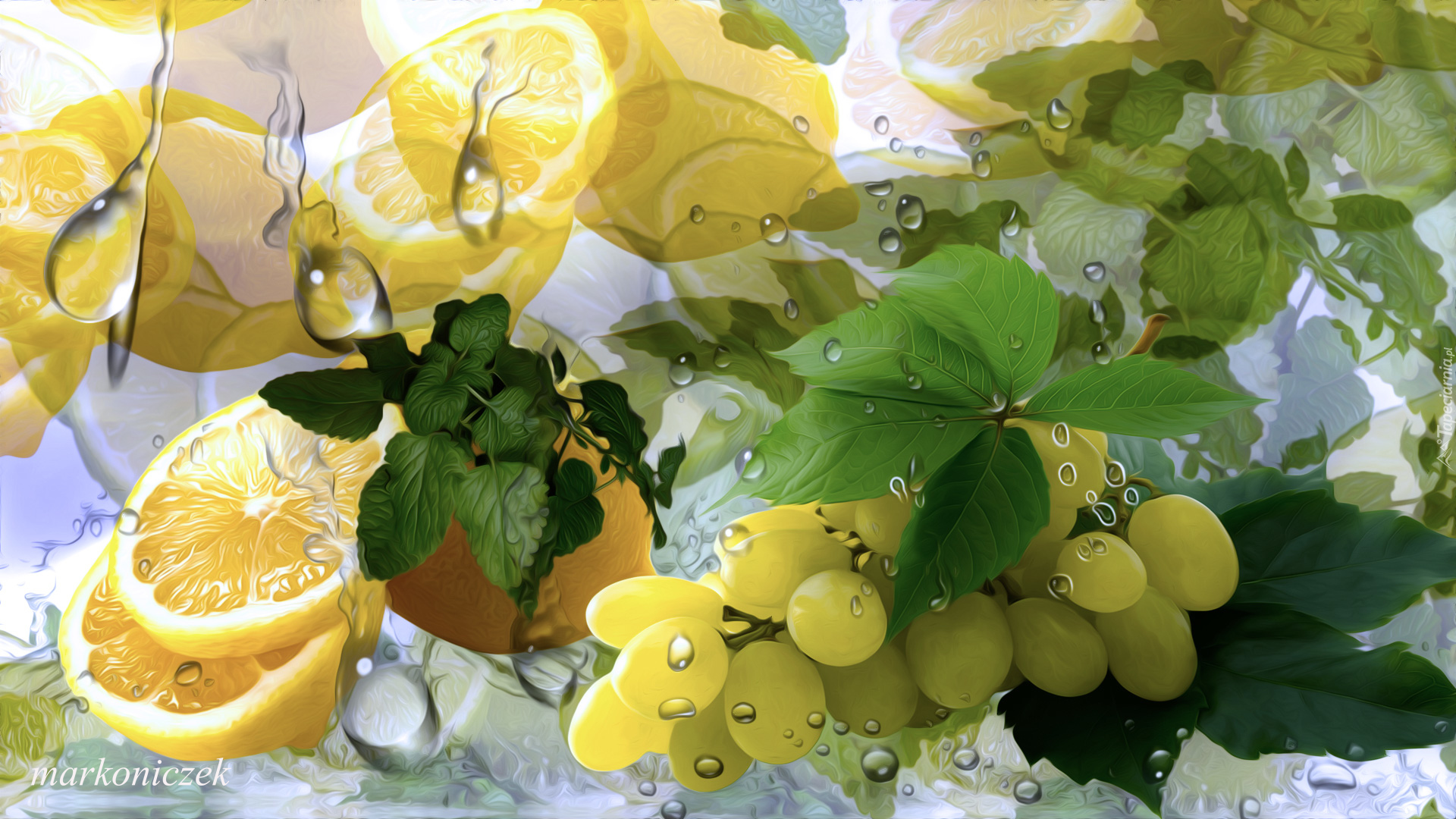 Edytor tapety: Cytryny i winogrona w grafice