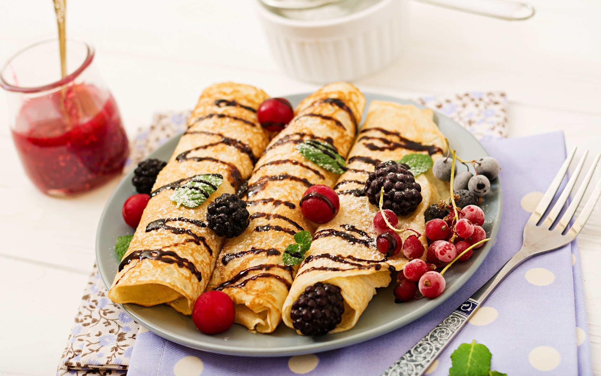 Edytor tapety: Trzy naleśniki z owocami