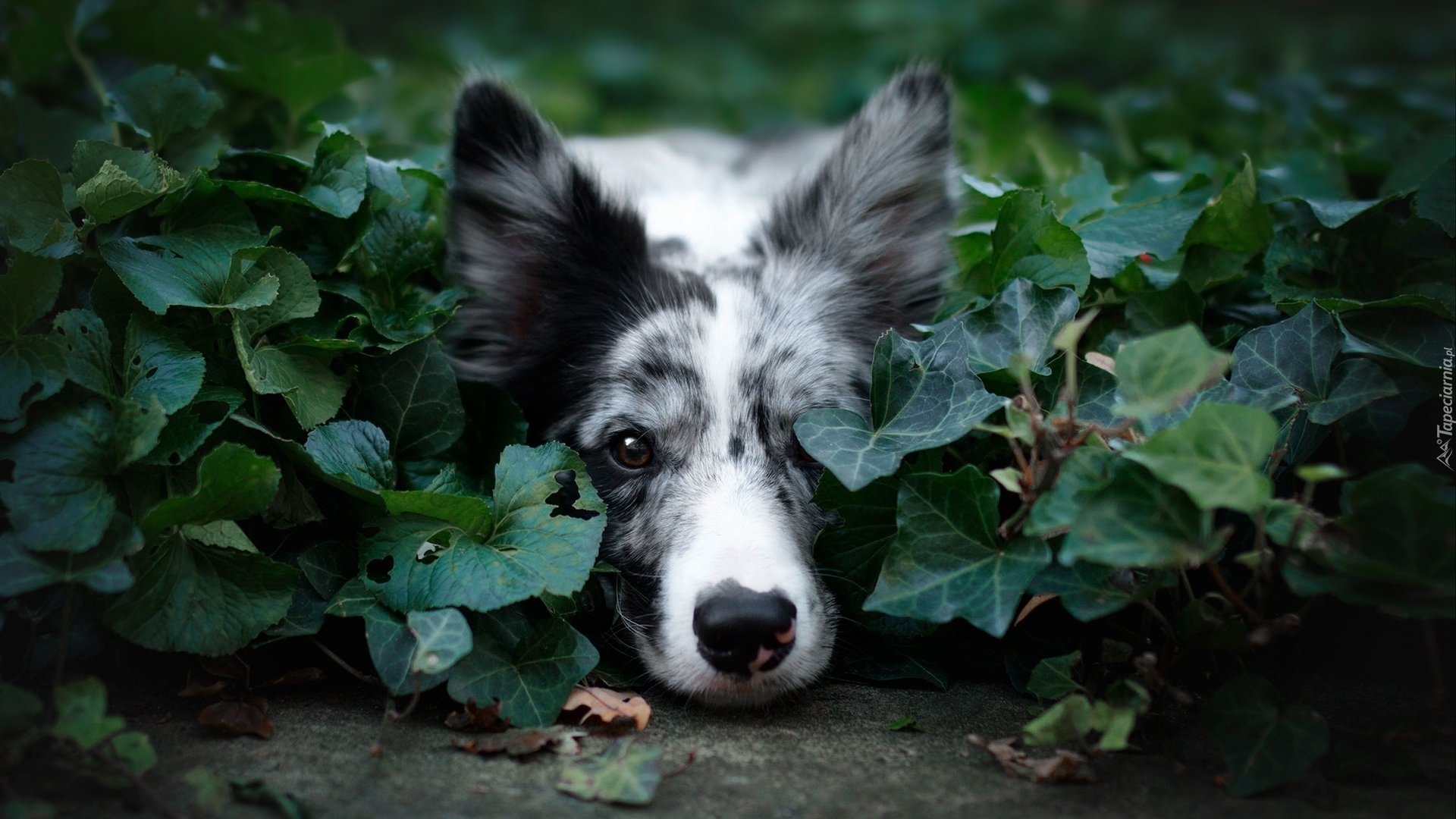 Edytor tapety: Border collie między liśćmi bluszczu