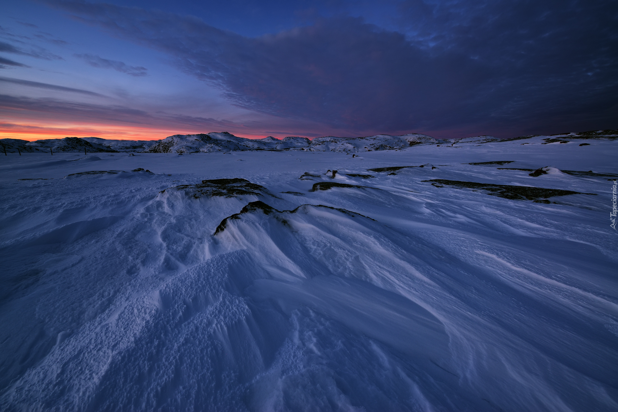 Edytor tapety: Zimowy zachód słońca nad górami