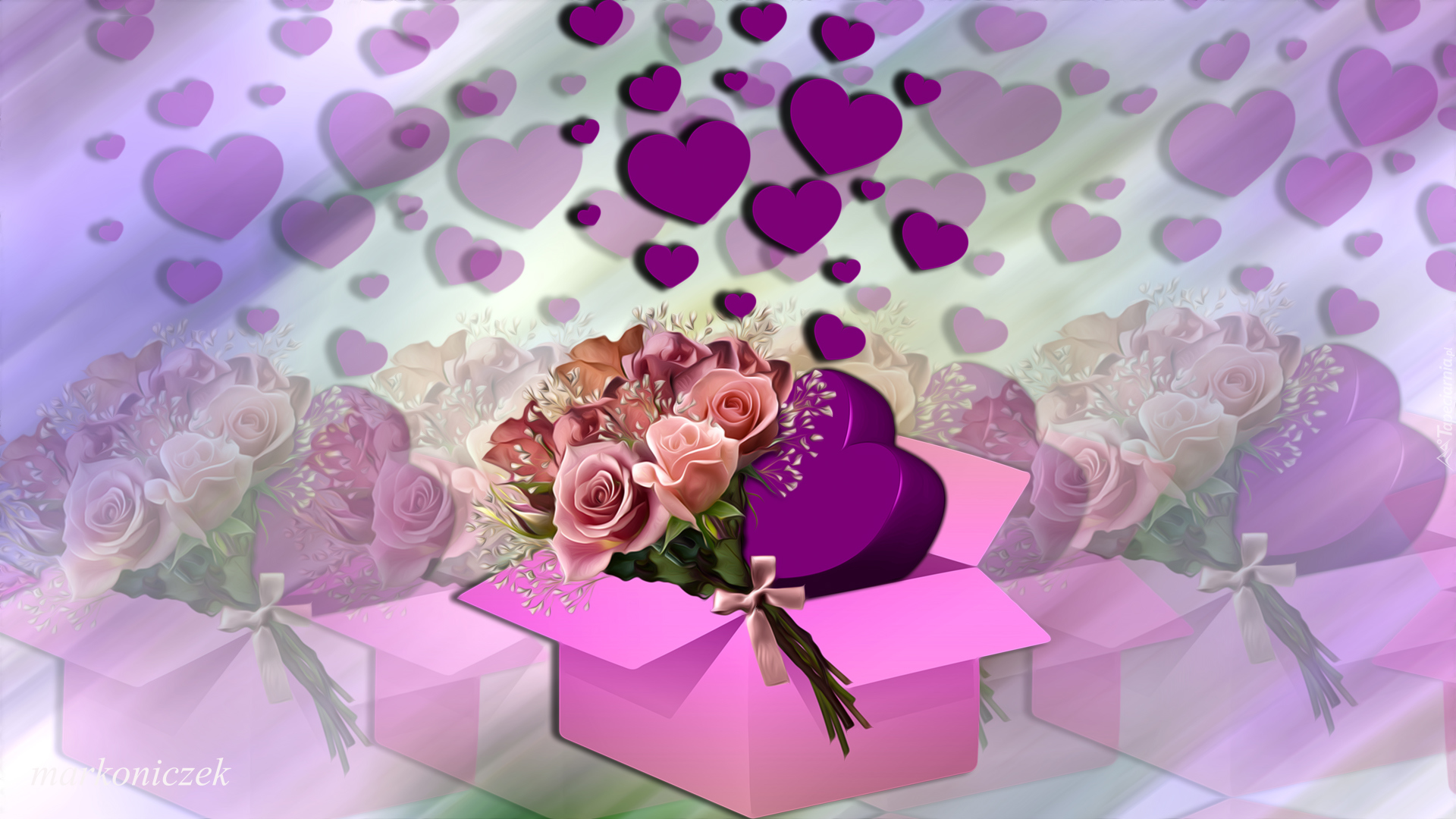 Edytor tapety: Pudełko z kwiatami i sercem