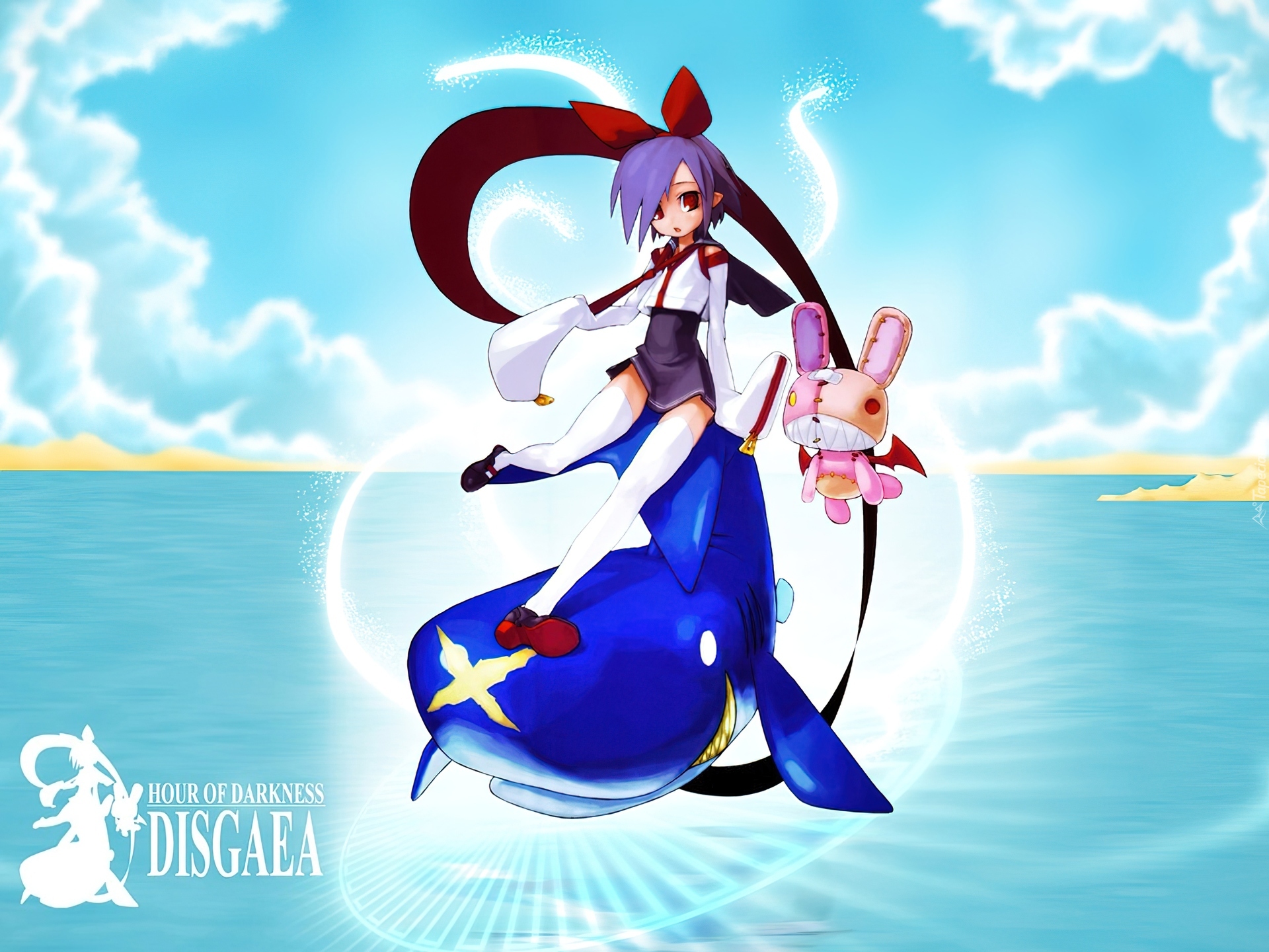 Edytor tapety: Disgaea, morze, chmury, wieloryb, królik, dziewczyna