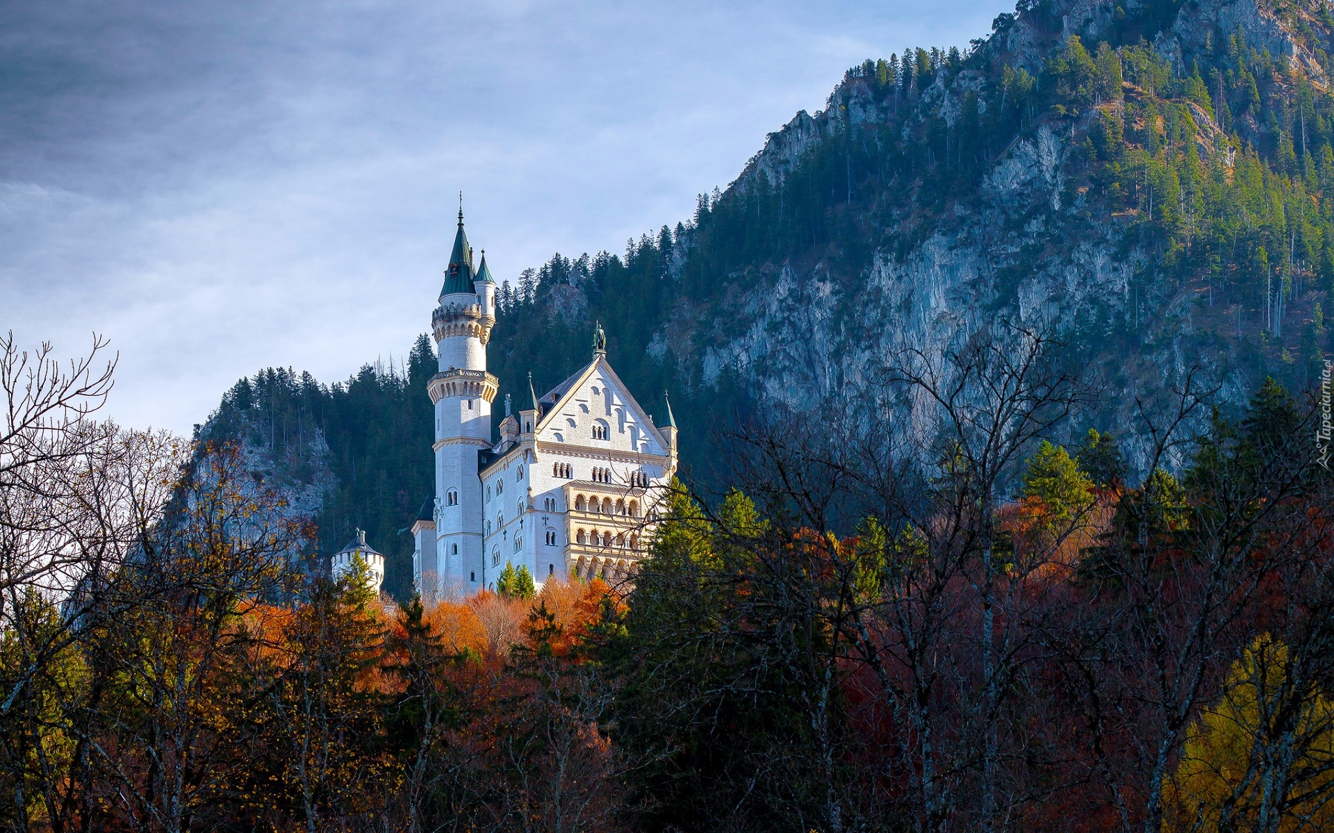 Edytor tapety: Zamek Neuschwanstein otoczony drzewami