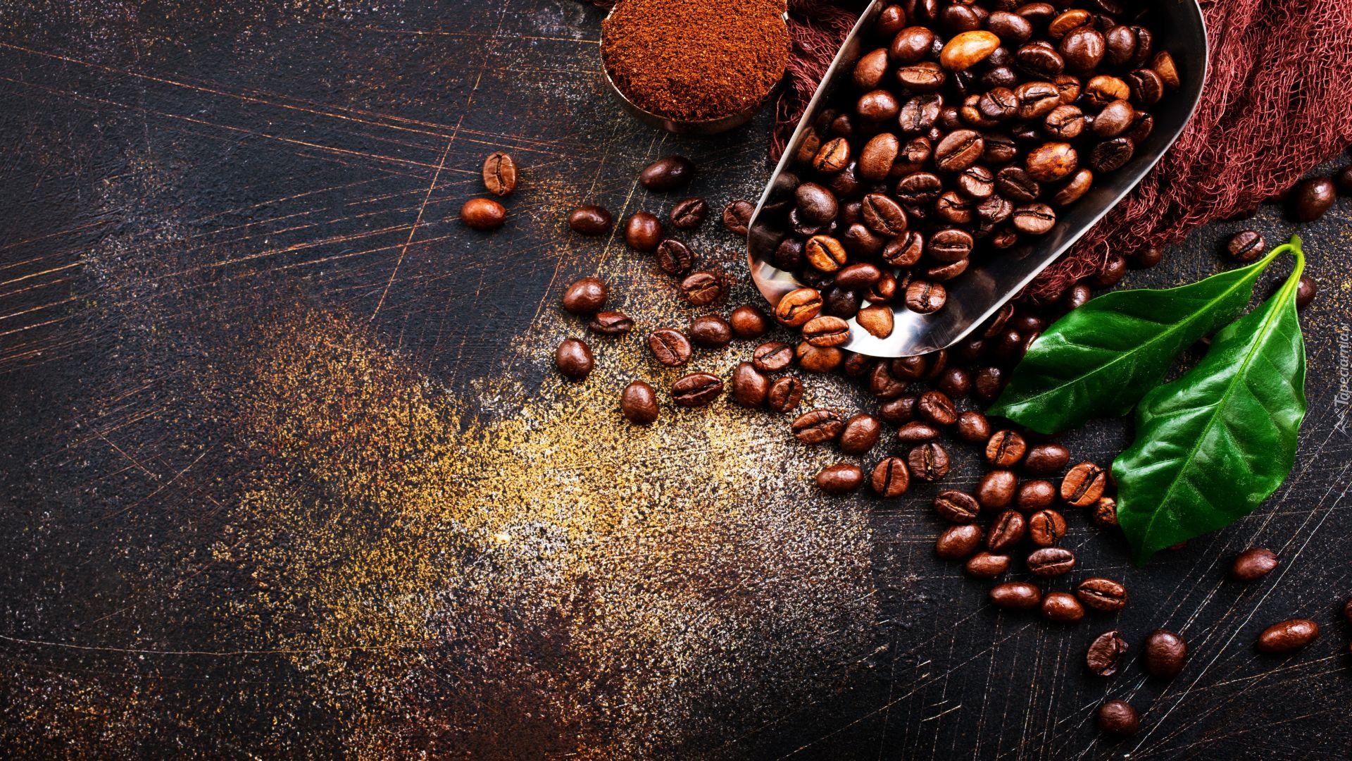 Edytor tapety: Ziarna kawy na nabieraku