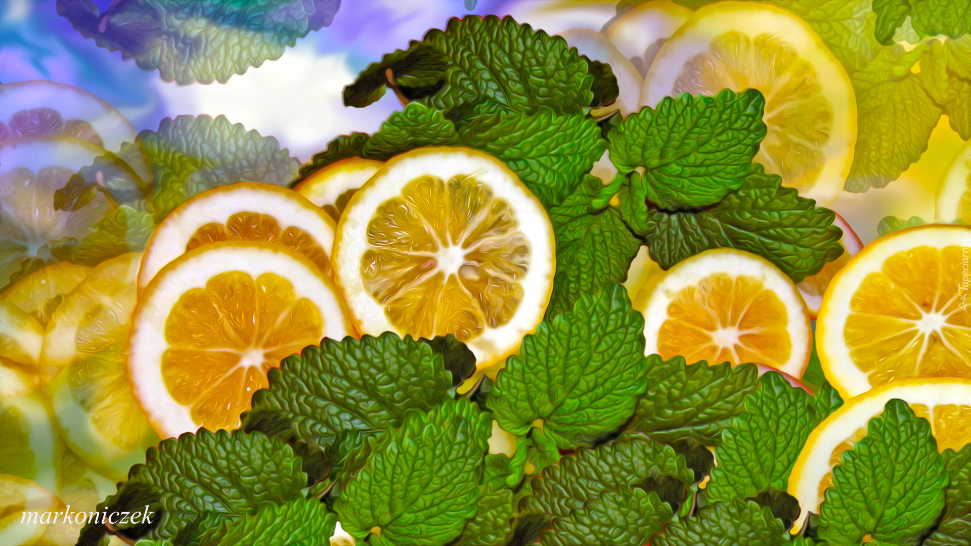 Edytor tapety: Plasterki cytryny z miętą