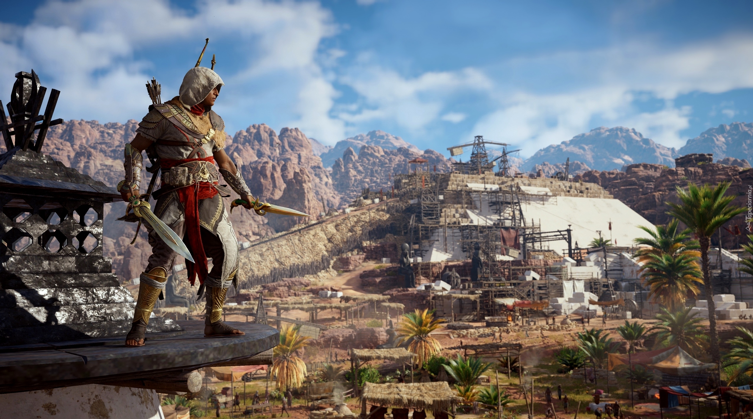 Edytor tapety: Uzbrojony Bayek w grze Assassins Creed Origins