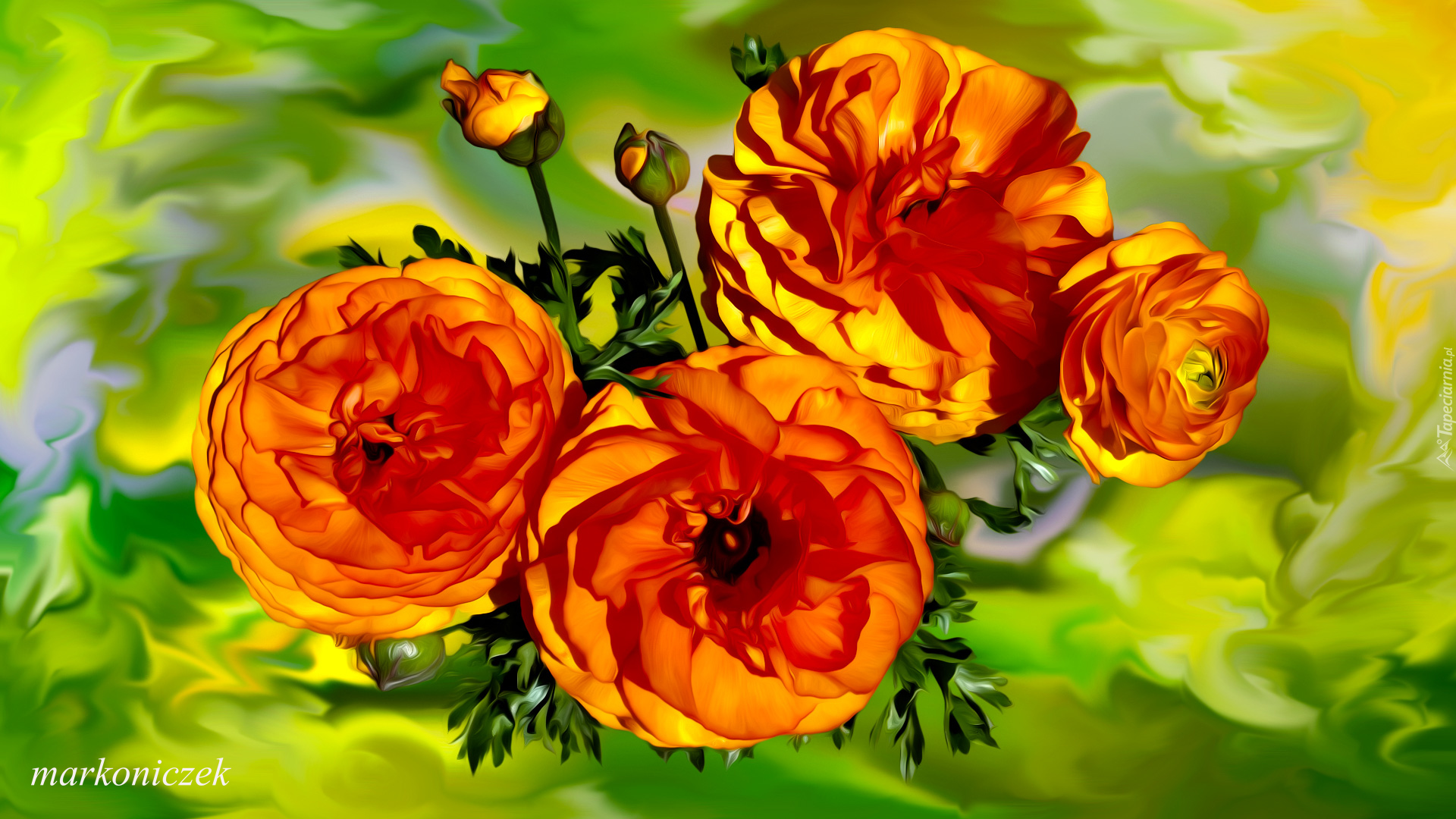 Edytor tapety: Pomarańczowe graficzne kwiatki