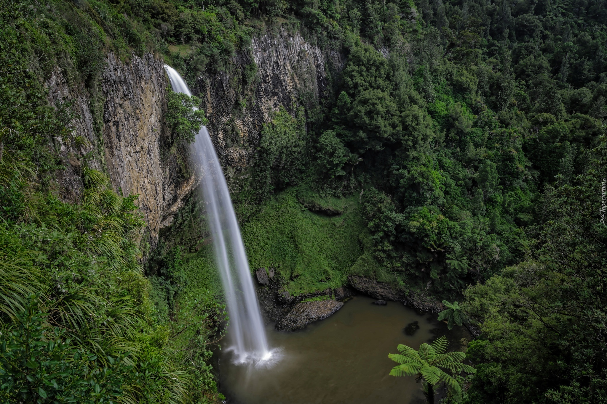 Edytor tapety: Wodospad Bridal Veil Falls w Nowej Zelandii