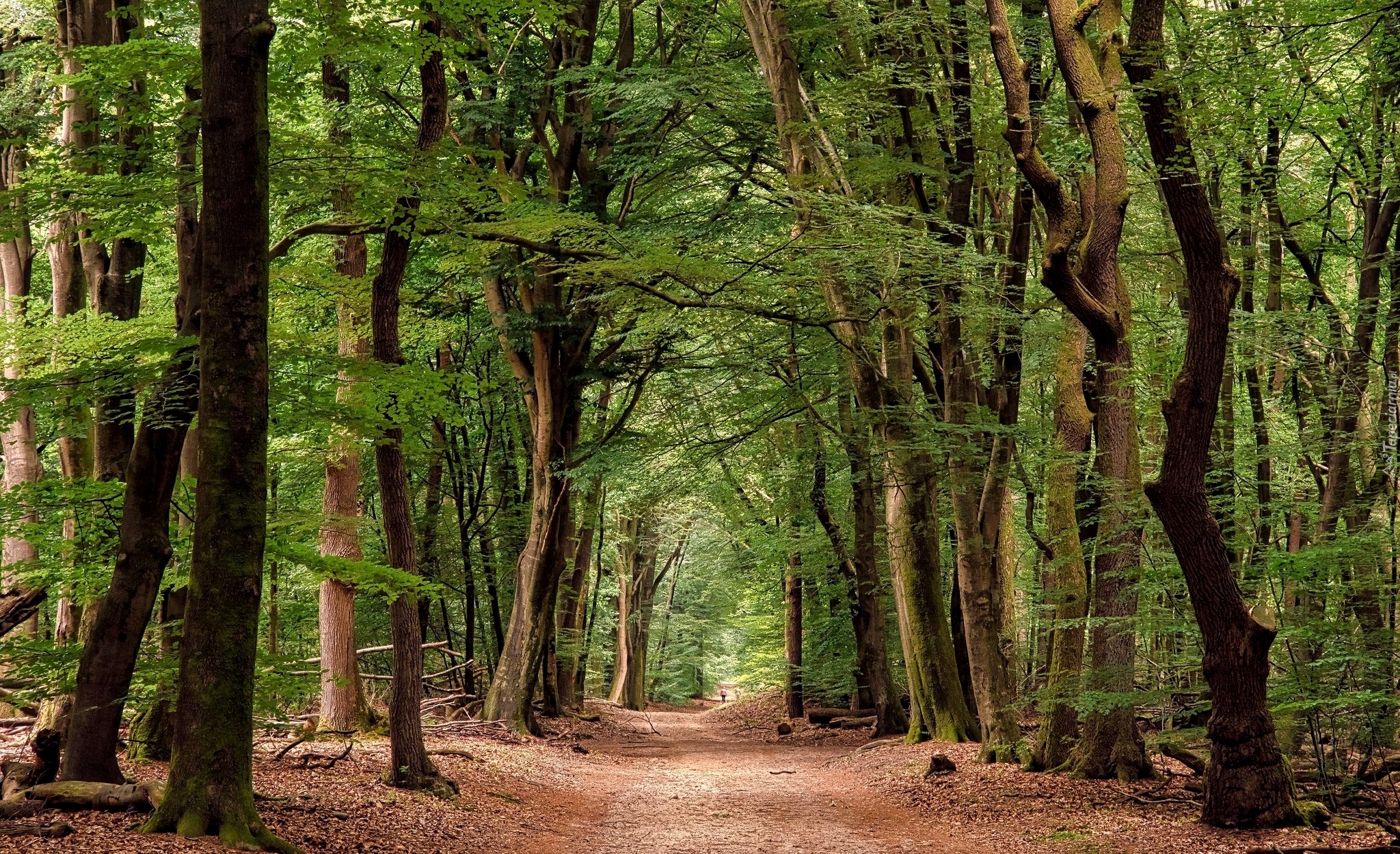 Edytor tapety: Zielone drzewa przy leśnej drodze