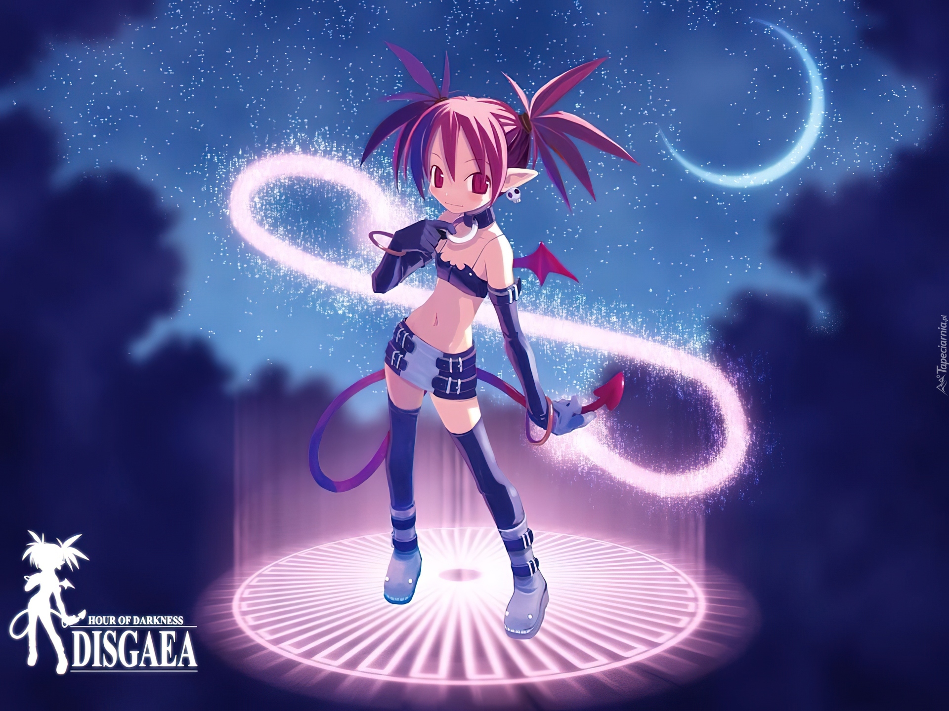Edytor tapety: Disgaea, dziewczyna, ogon, gwiazdy, księżyc
