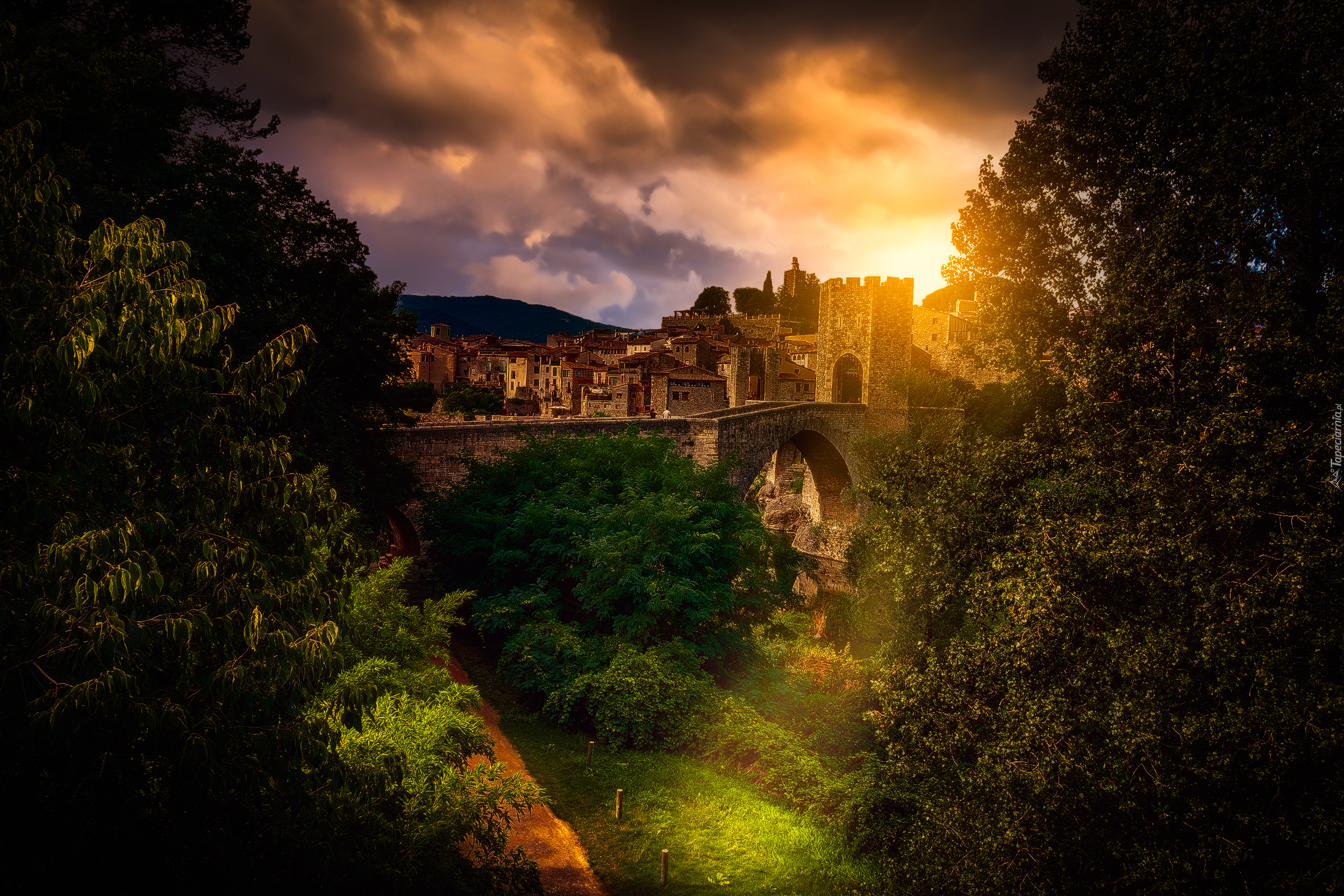 Edytor tapety: Most Puente de Besalu w Hiszpanii