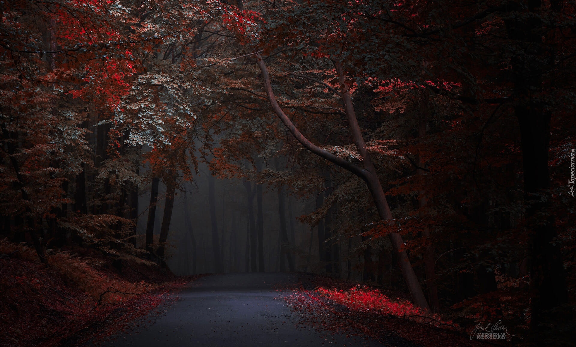 Edytor tapety: Droga w ciemnym lesie