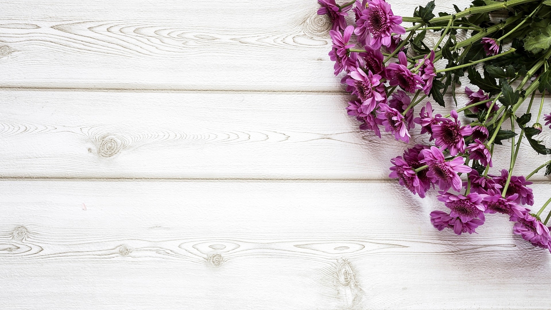 Edytor tapety: Fioletowe chryzantemy na deskach