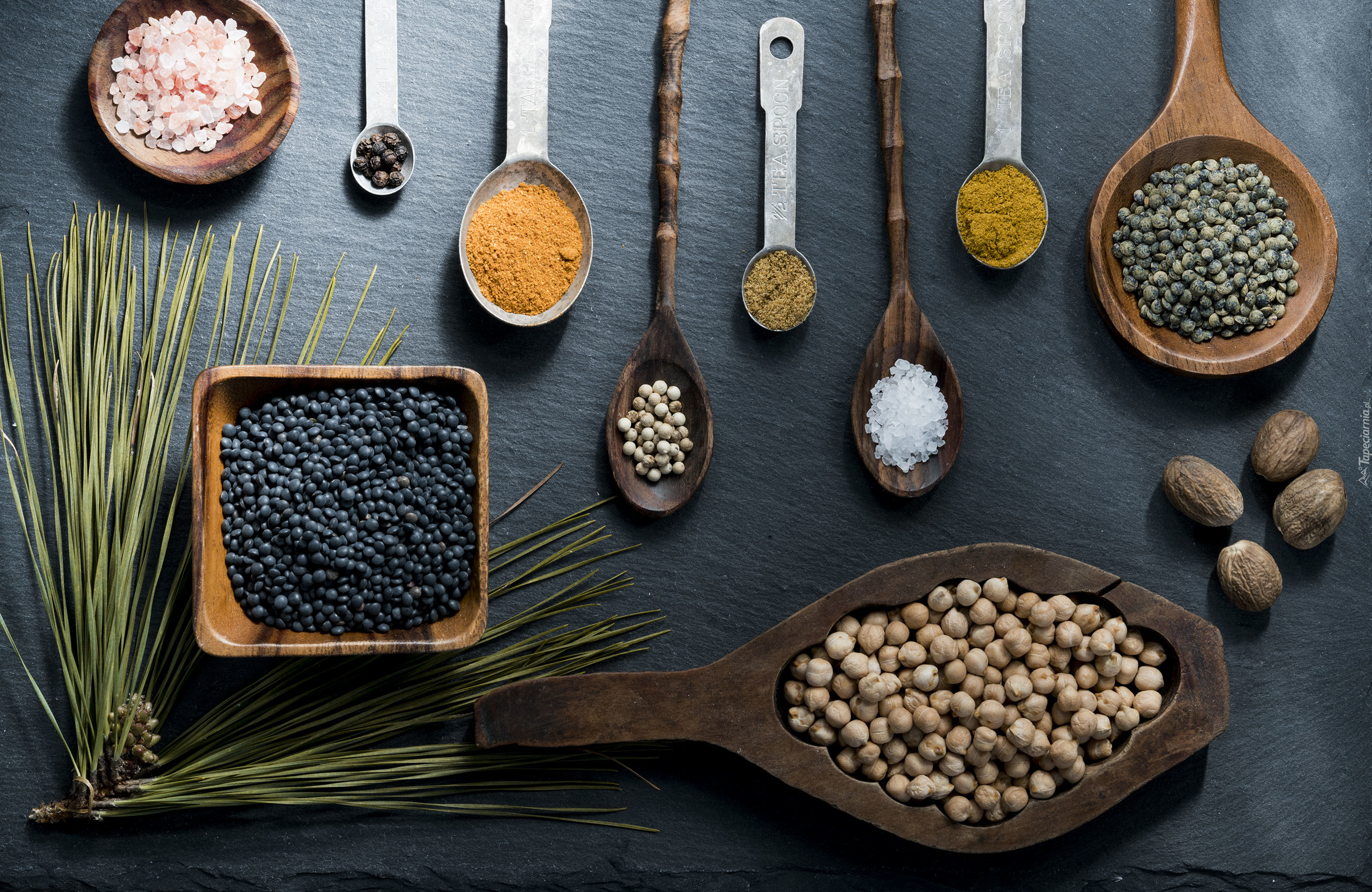 Edytor tapety: Przyprawy na łyżeczkach i w miseczkach