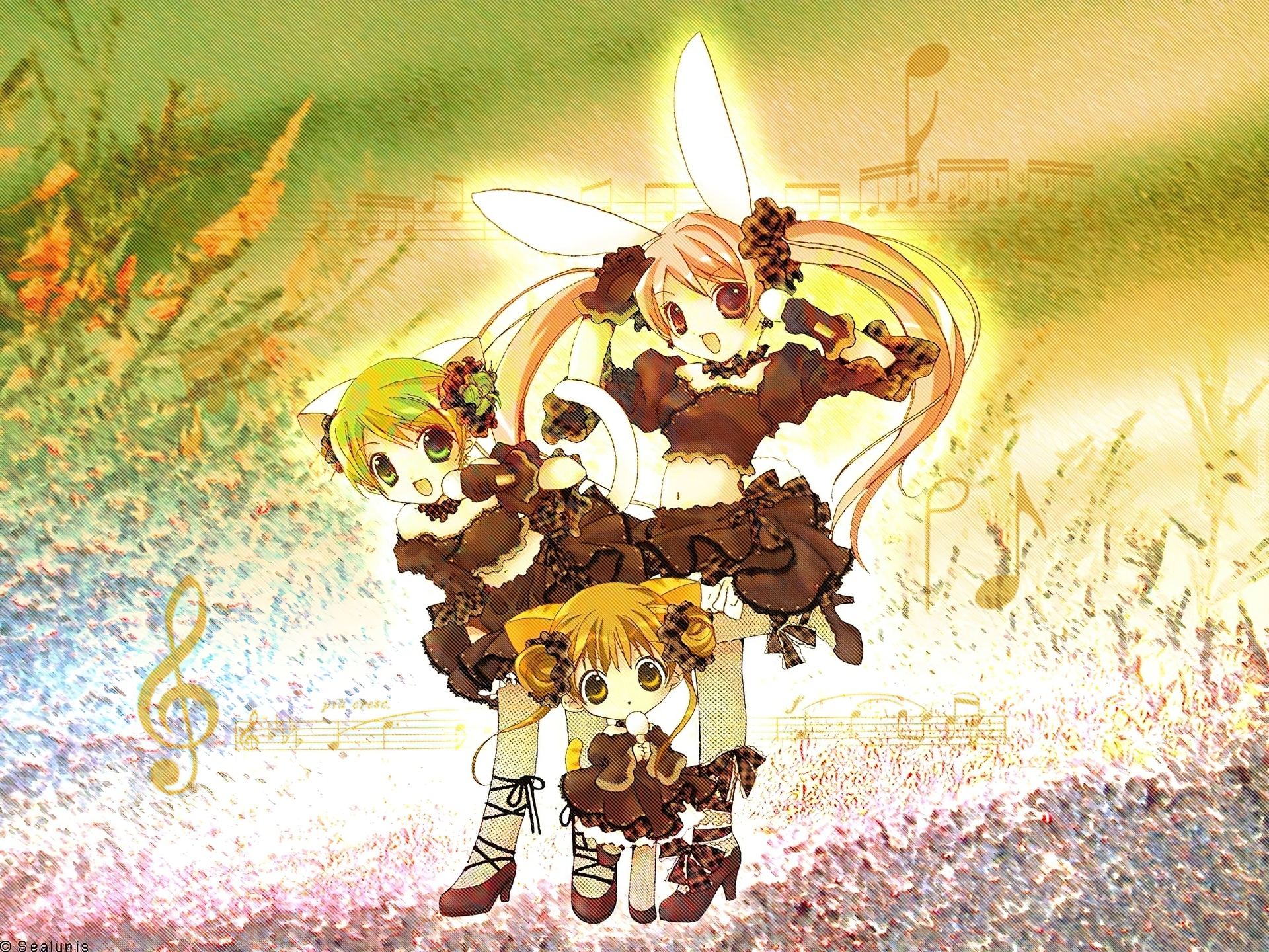 Edytor tapety: Digi Charat, dziewczyny, dziecko, muzyka, nuty
