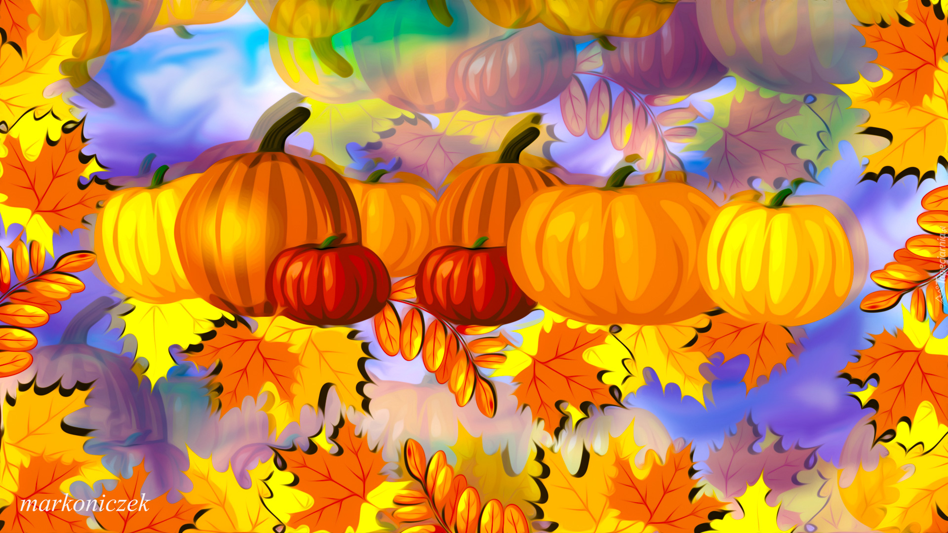 Edytor tapety: Dynie na liściach w grafice