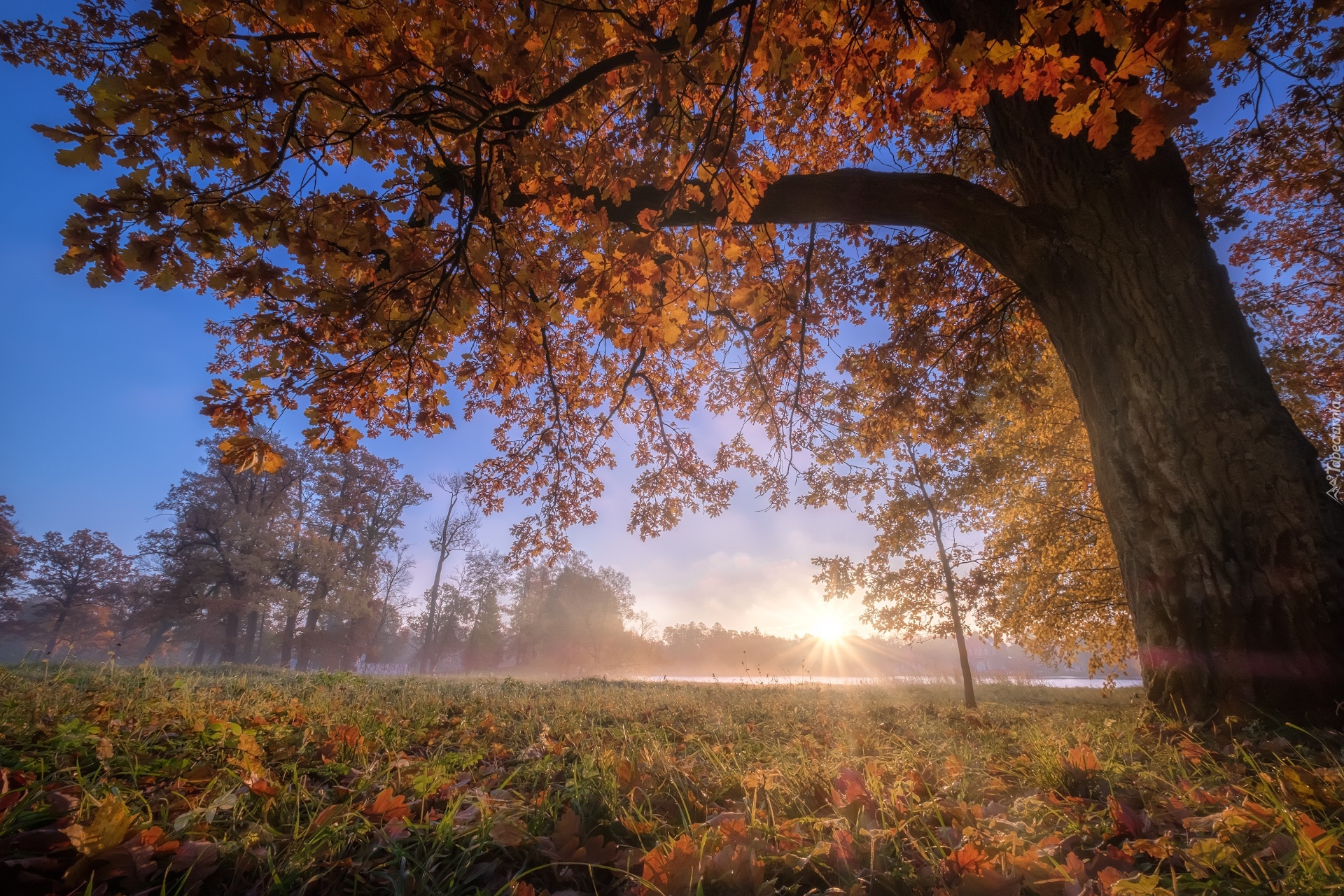 Edytor tapety: Drzewo w promieniach słońca