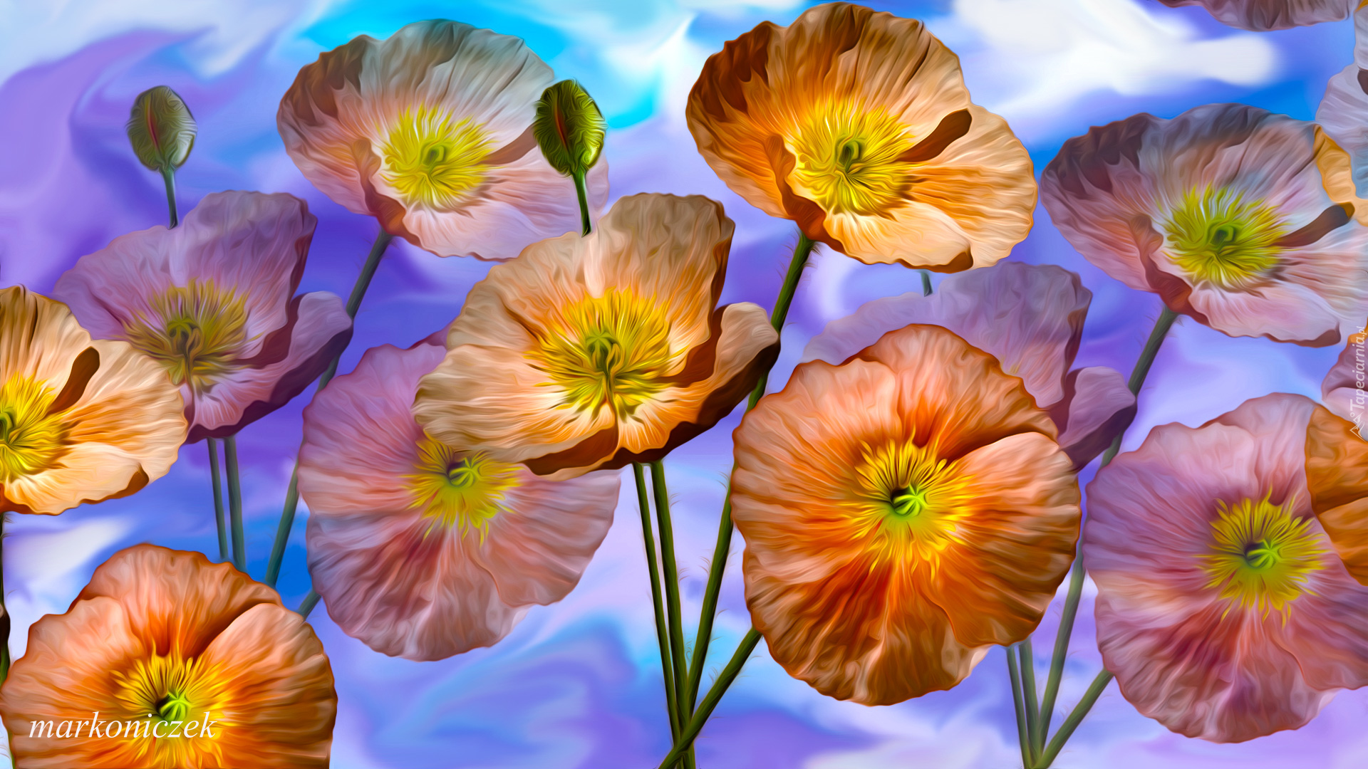 Edytor tapety: Maki na niebieskim tle