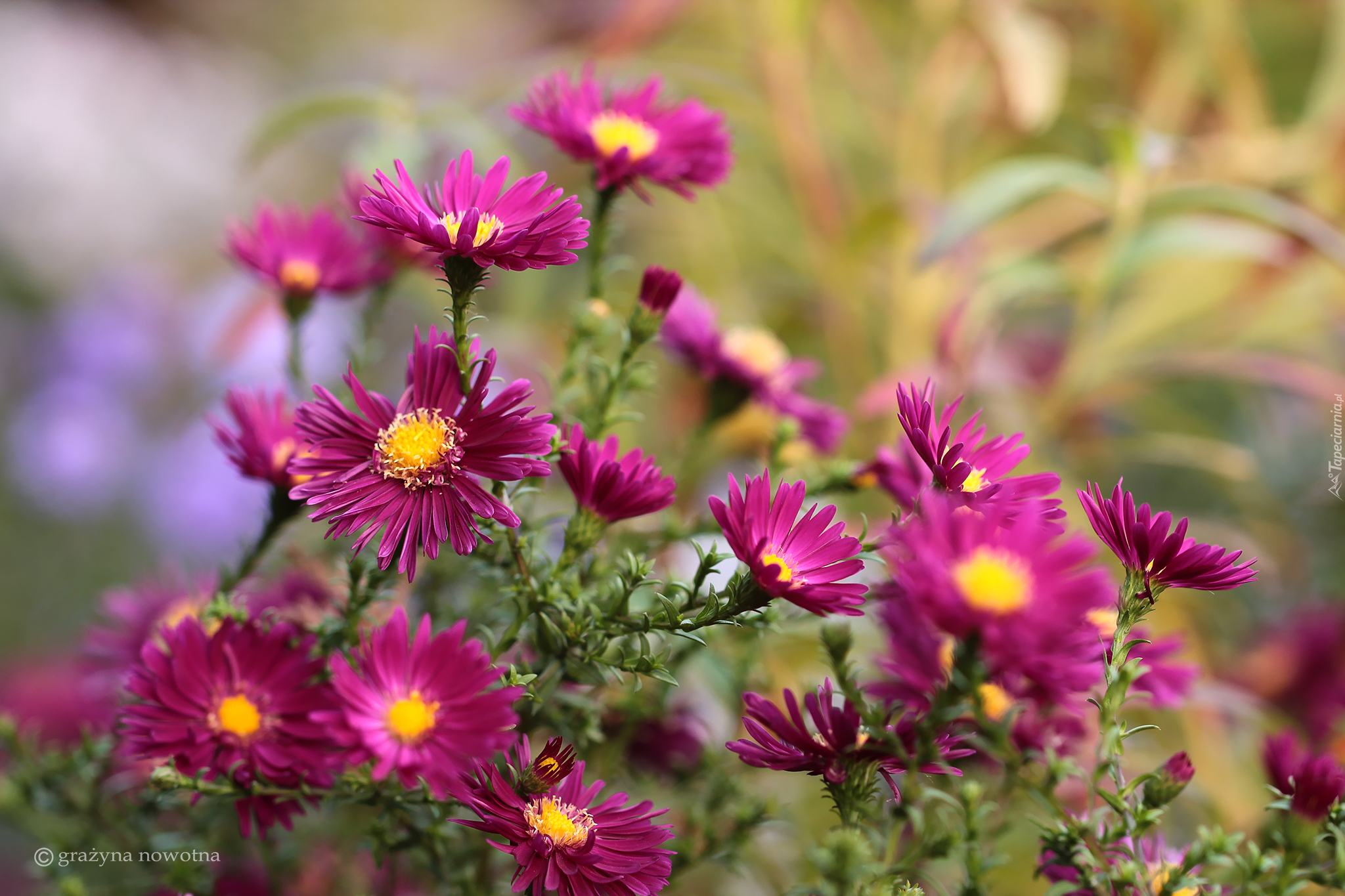 Edytor tapety: Bordowe kwiaty astrów marcinków