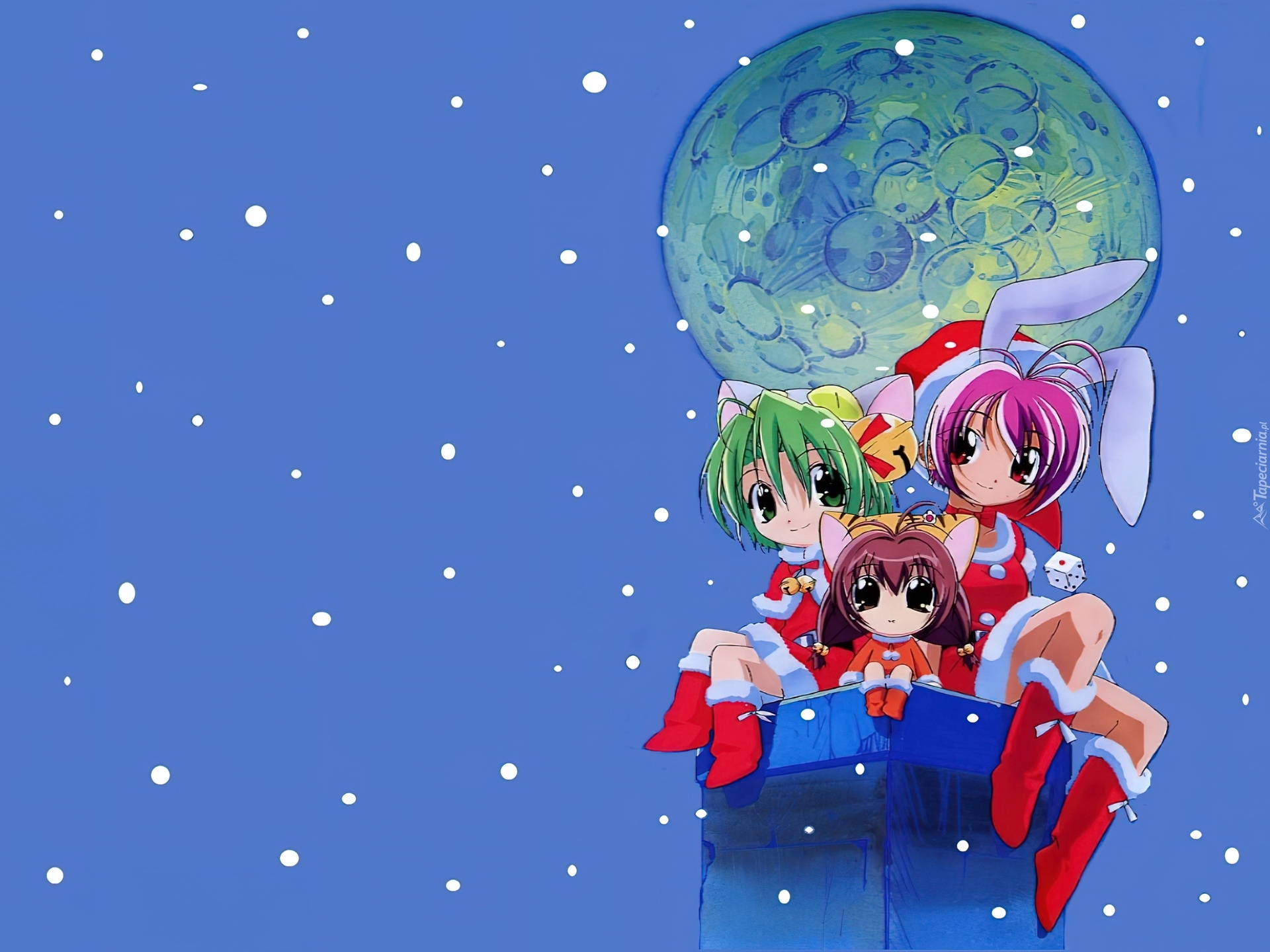 Edytor tapety: Digi Charat, dzieci, dziewczynki, komin, księżyc