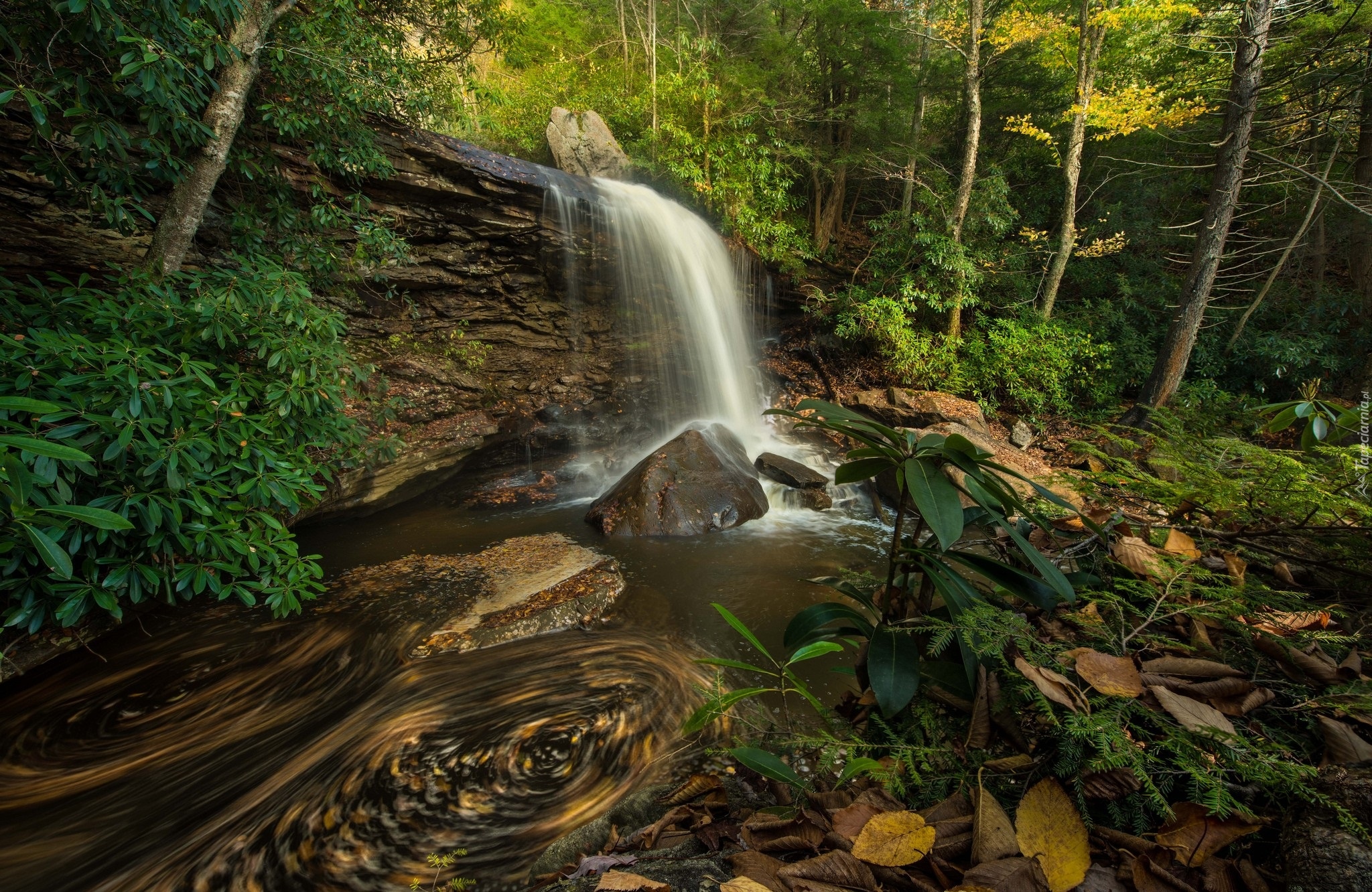 Edytor tapety: Wodospad na skale w lesie