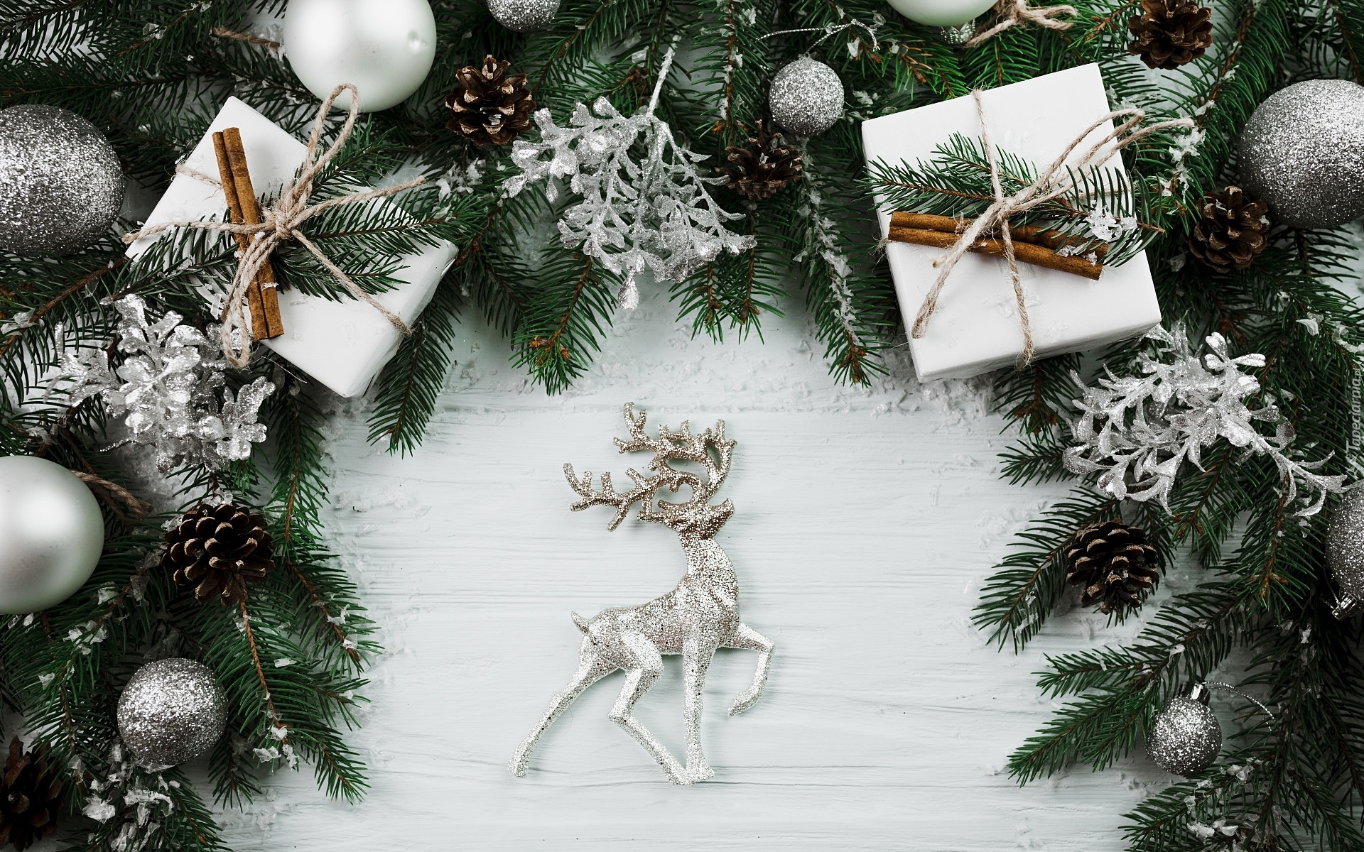 Edytor tapety: Prezenty bożonarodzeniowe na gałązkach