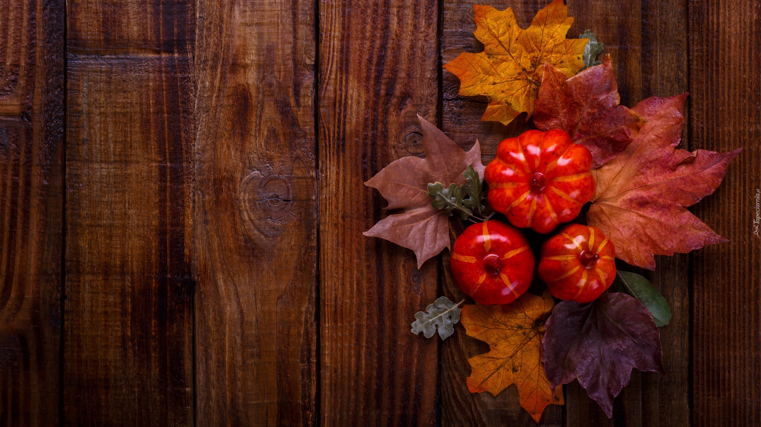 Edytor tapety: Liście i dynie na deskach
