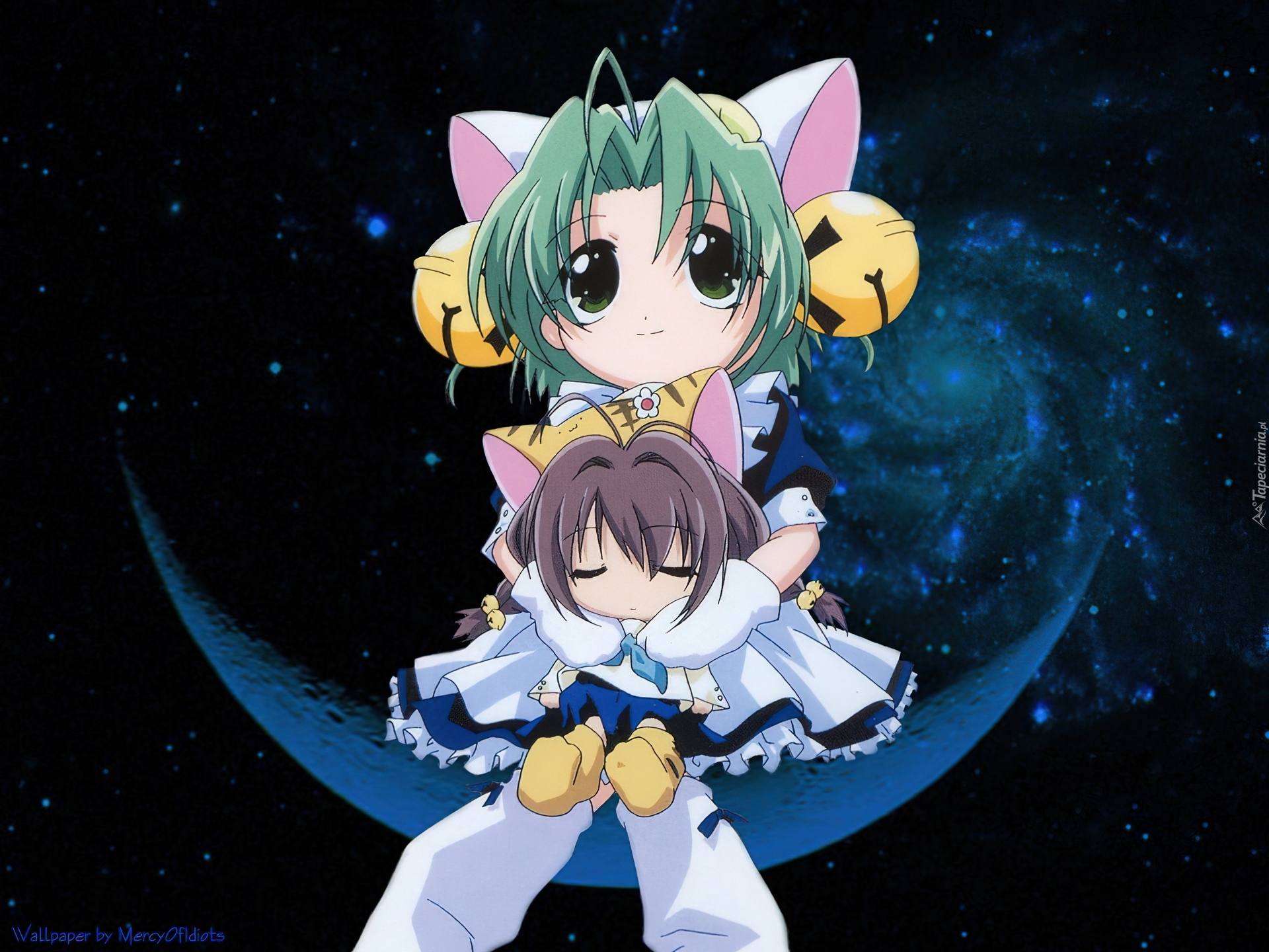 Edytor tapety: dziewczyny, dzwonki, Digi Charat, księżyc, kosmoas