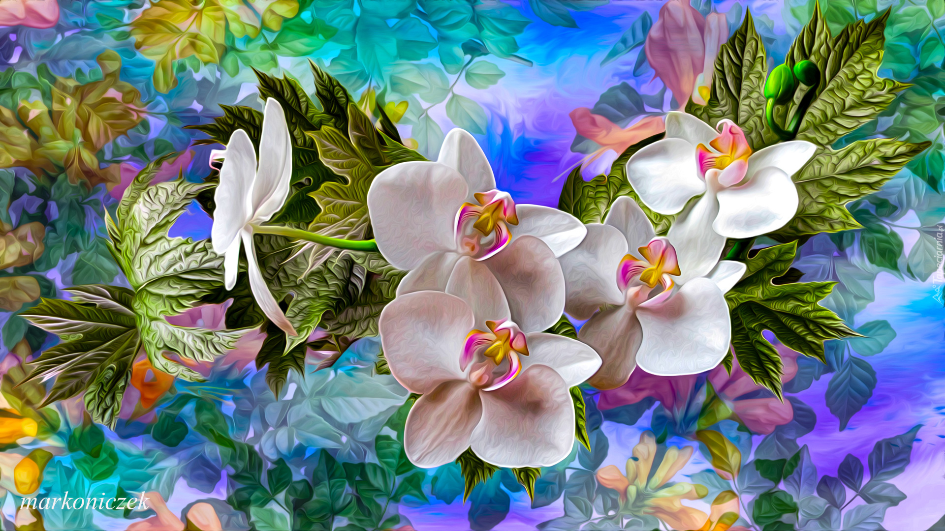 Edytor tapety: Storczyki na błękitnym tle