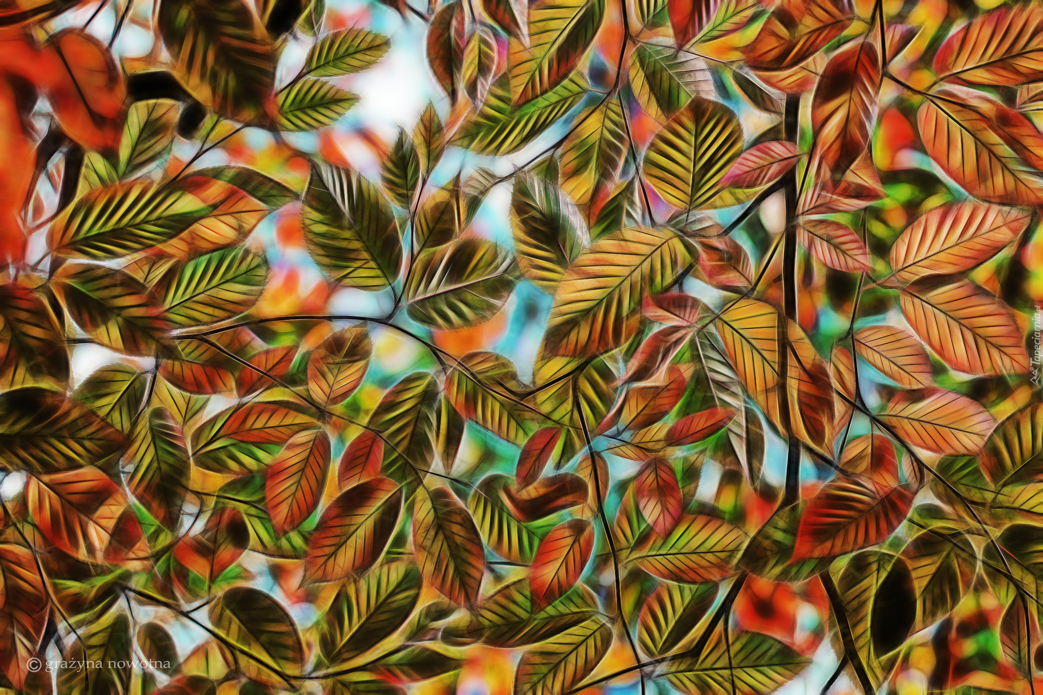 Edytor tapety: Jesienne liście w grafice fractalius