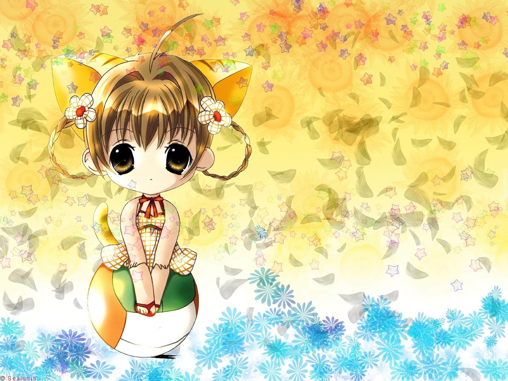 Edytor tapety: Digi Charat, dziewczyna, piłka, warkoczyki