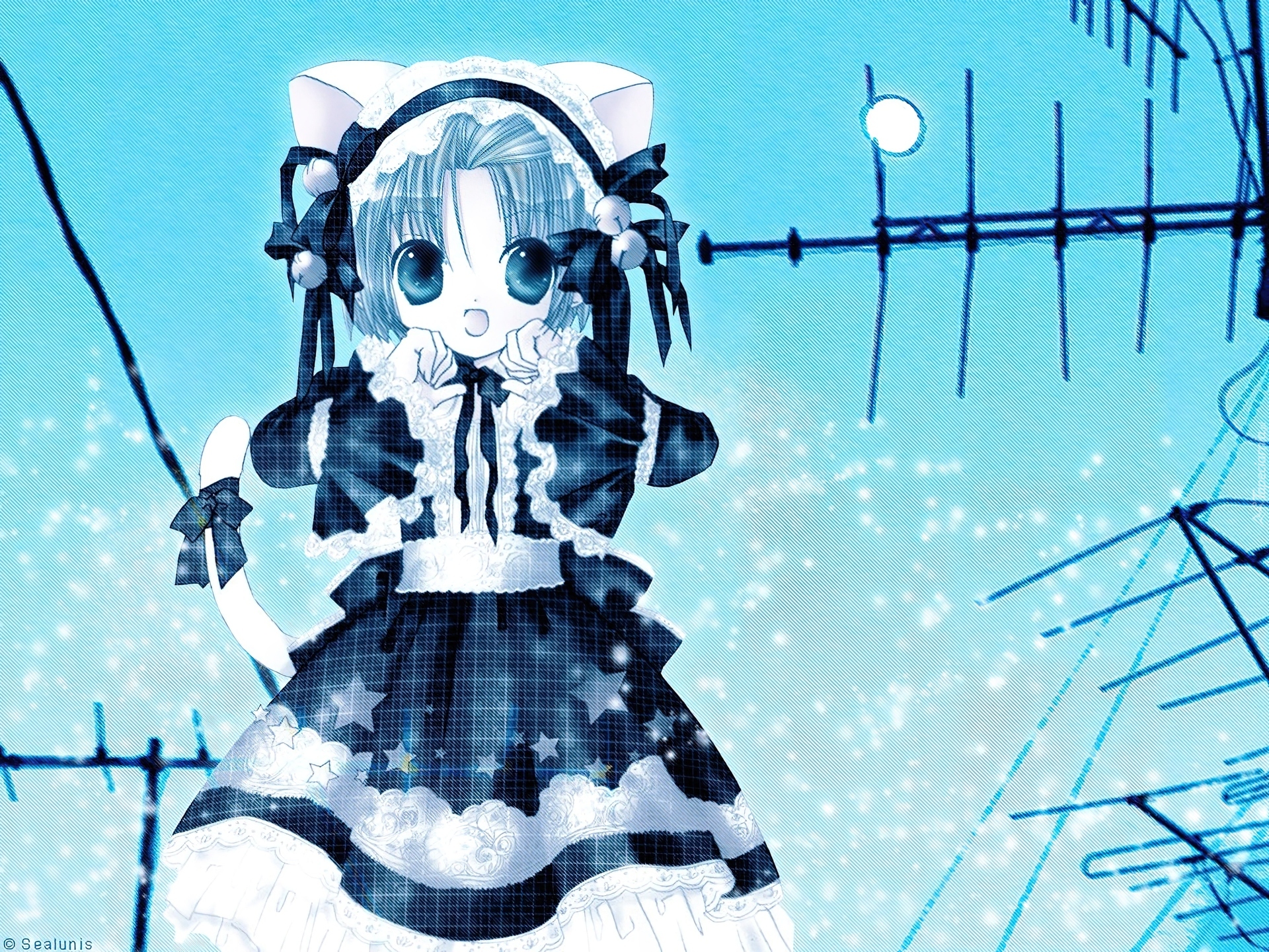 Edytor tapety: Digi Charat, anteny, dziewczyna, sukienki