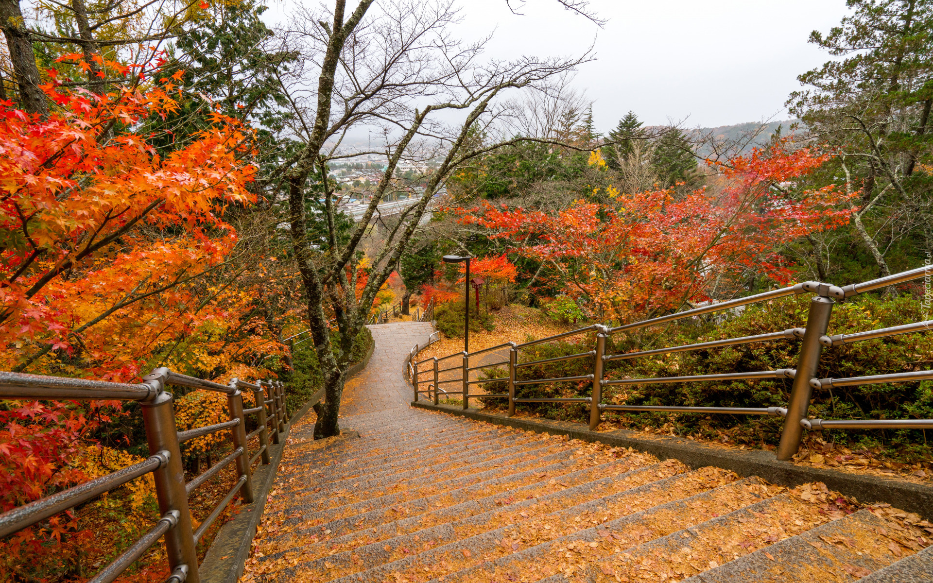 Edytor tapety: Schody obok jesiennych drzew