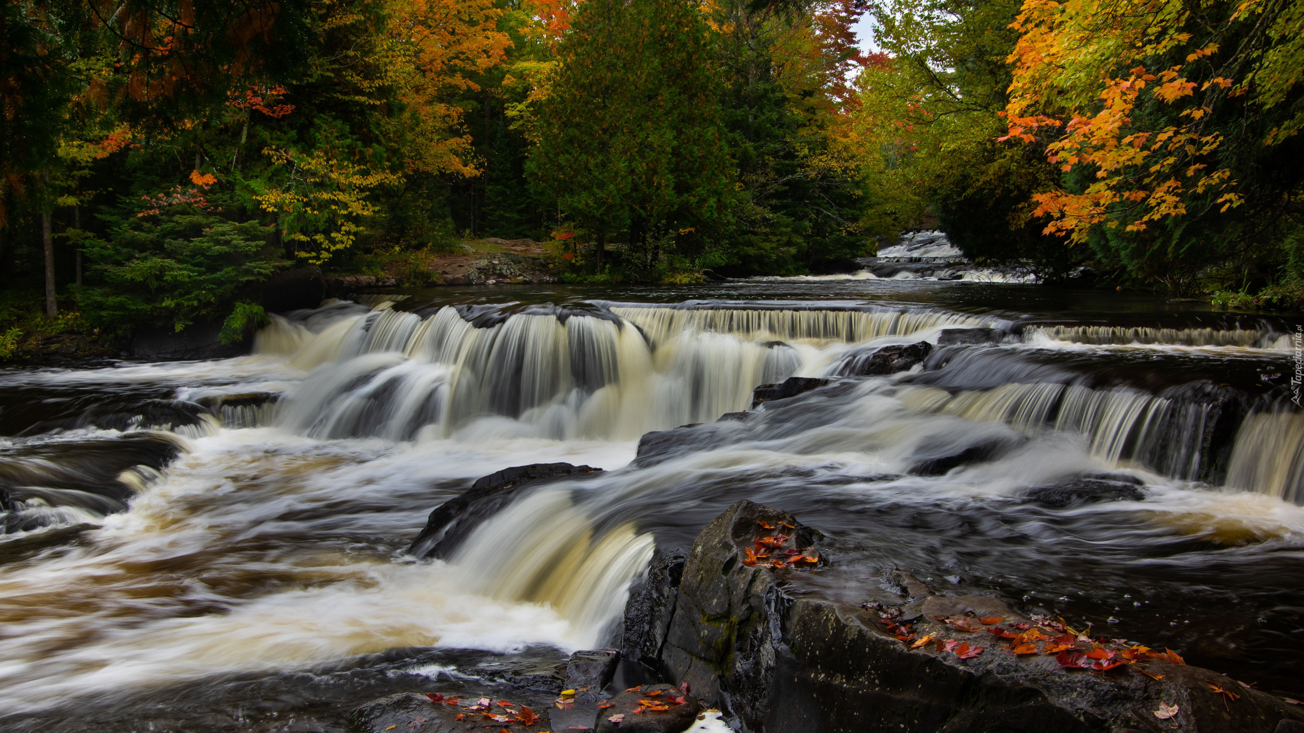 Edytor tapety: Kaskada w lesie jesienną porą