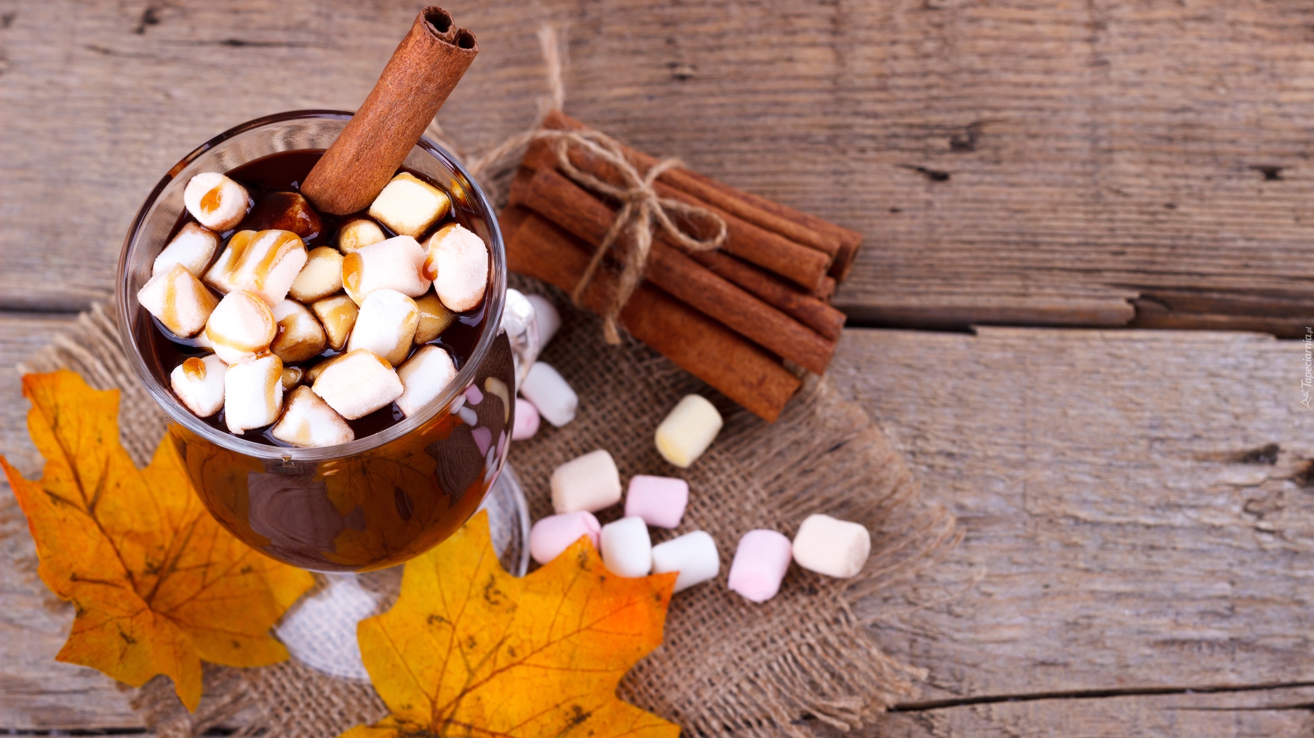Edytor tapety: Napój z piankami i cynamonem