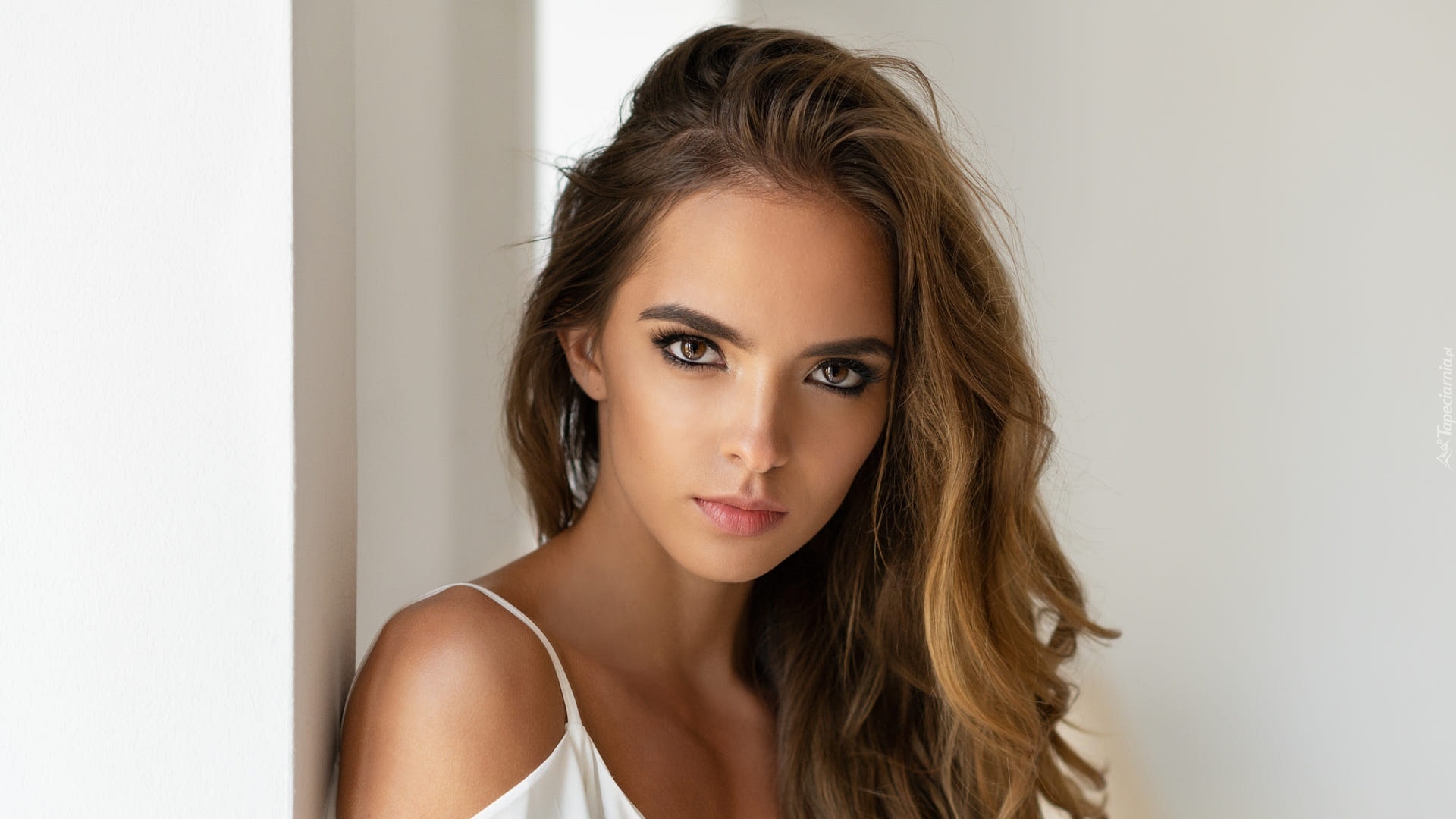 Edytor tapety: Długowłosa szatynka z pięknymi oczami