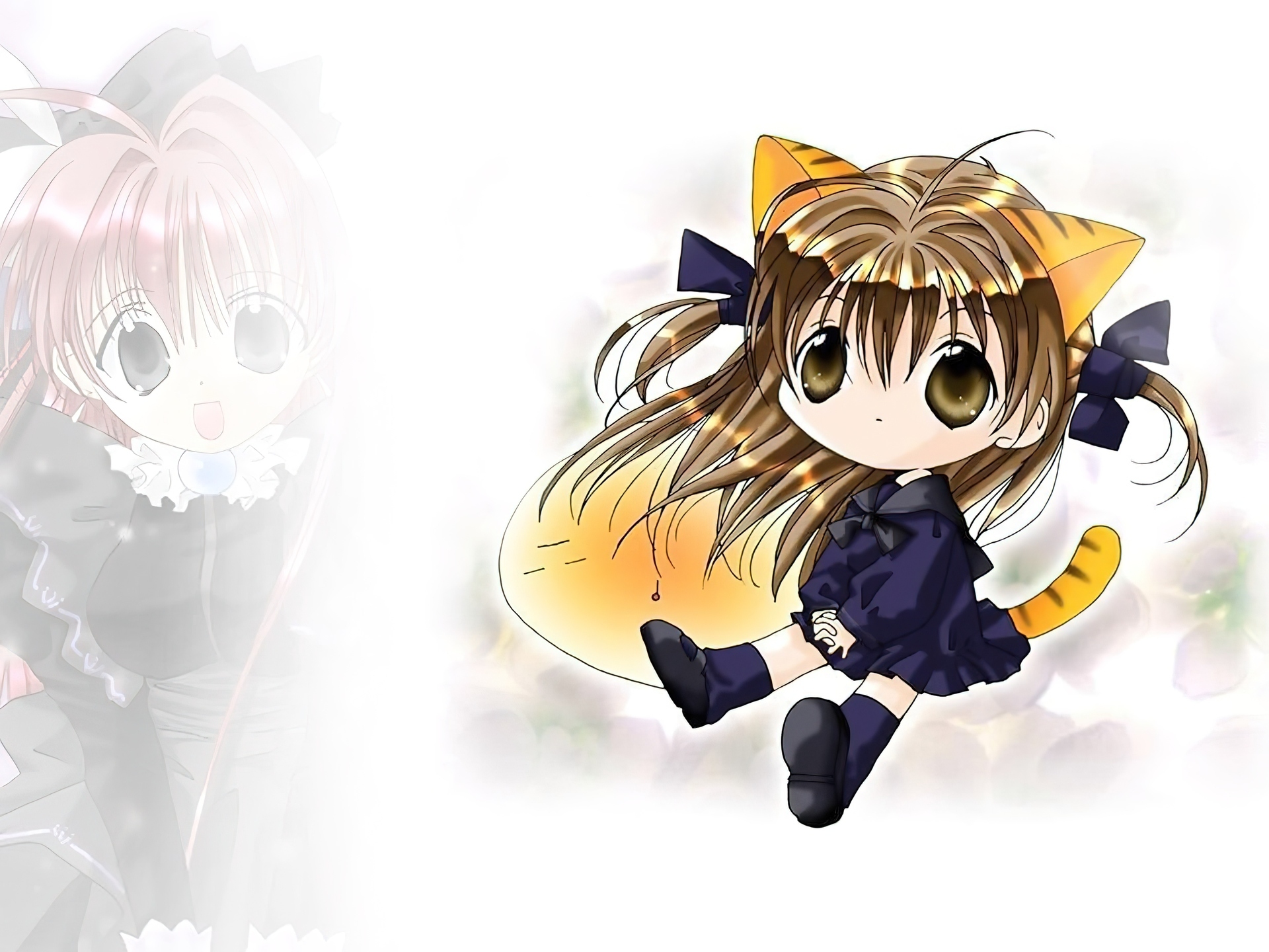 Edytor tapety: Digi Charat, kokarda, kot, mgła, dziewczynka