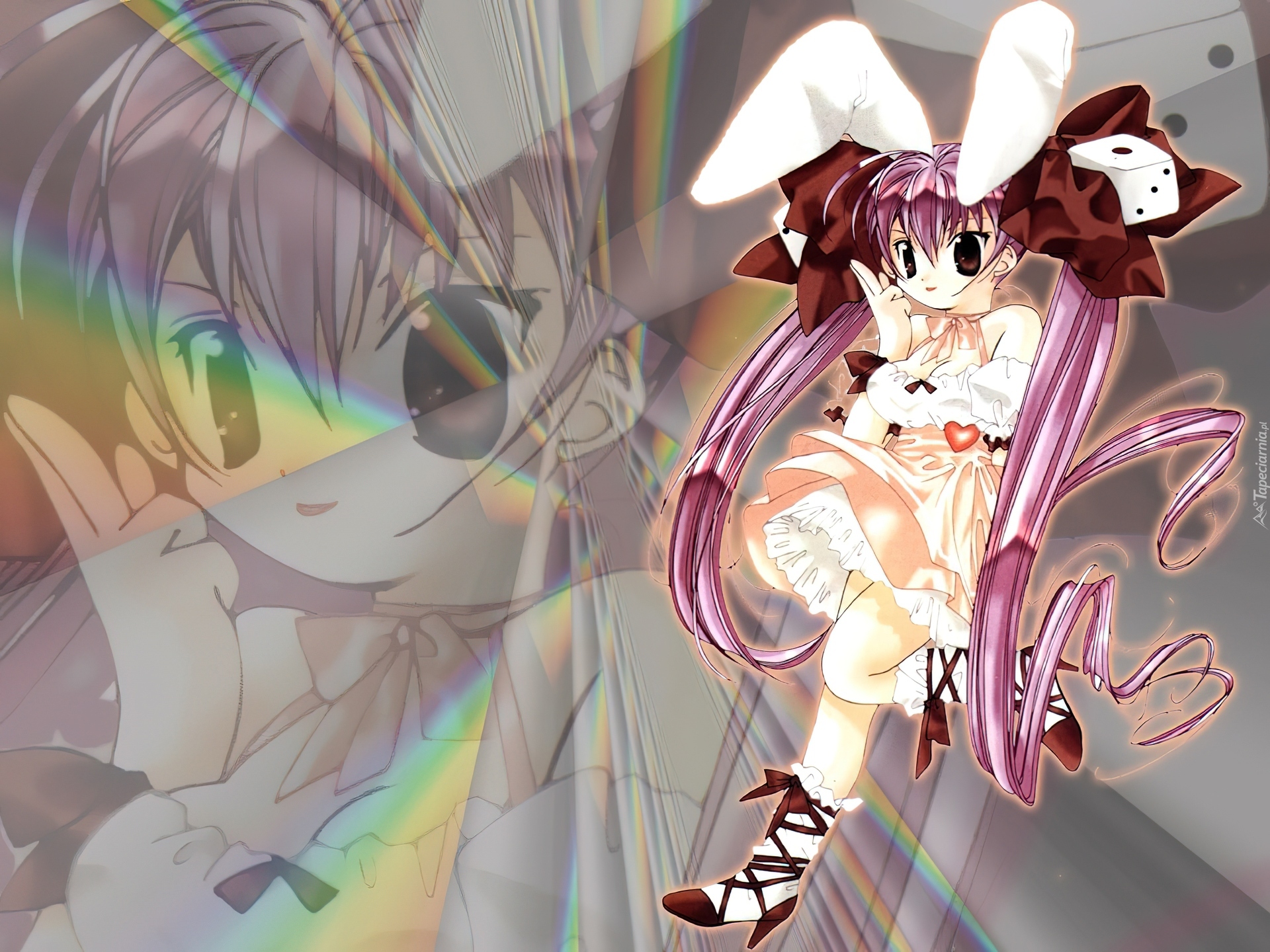 Edytor tapety: Digi Charat, buty, blask, kokarda, uszy