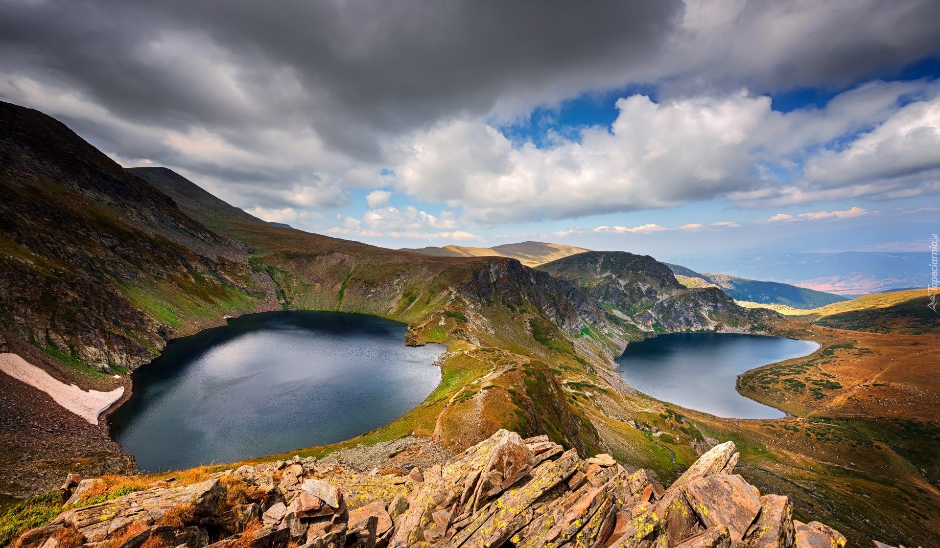 Edytor tapety: Widok na dwa jeziora w górach