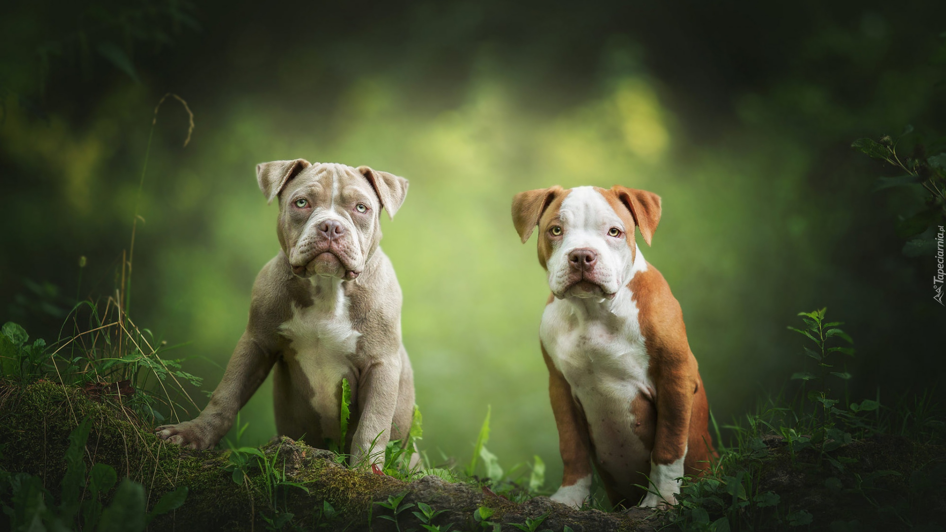 Edytor tapety: Dwa szczeniaki amerykańskiego pitbullteriera